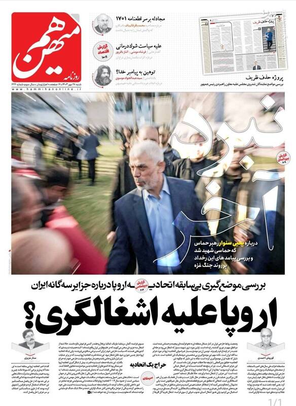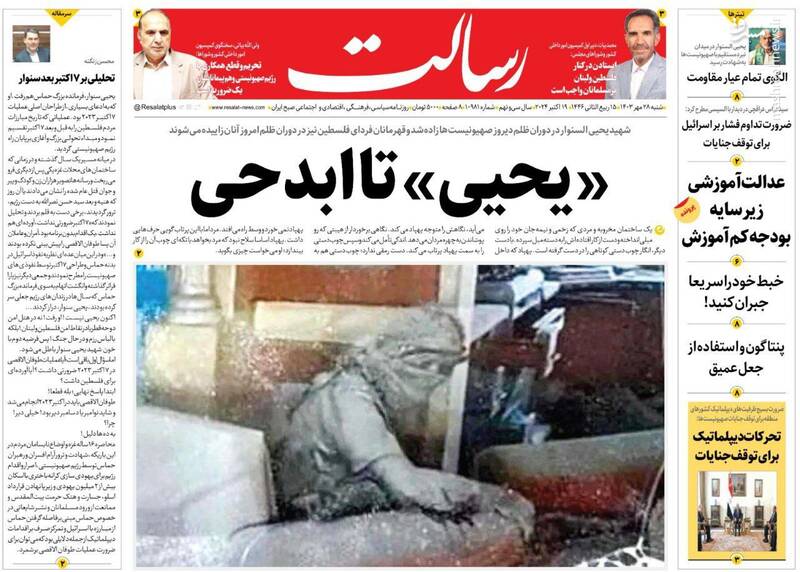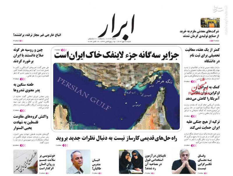 صفحه اول روزنامههای شنبه ۲۸ مهر ۱۴۰۳