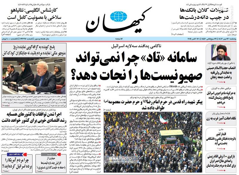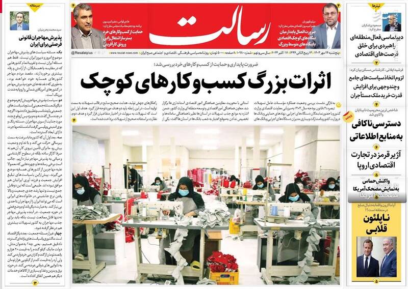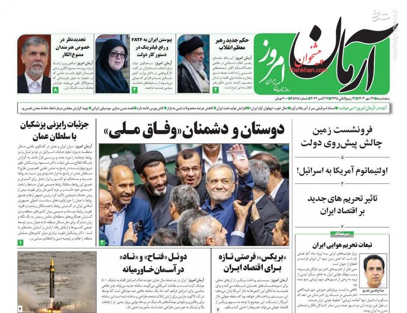 صفحه اول روزنامههای پنجشنبه ۲۶ مهر ۱۴۰۳