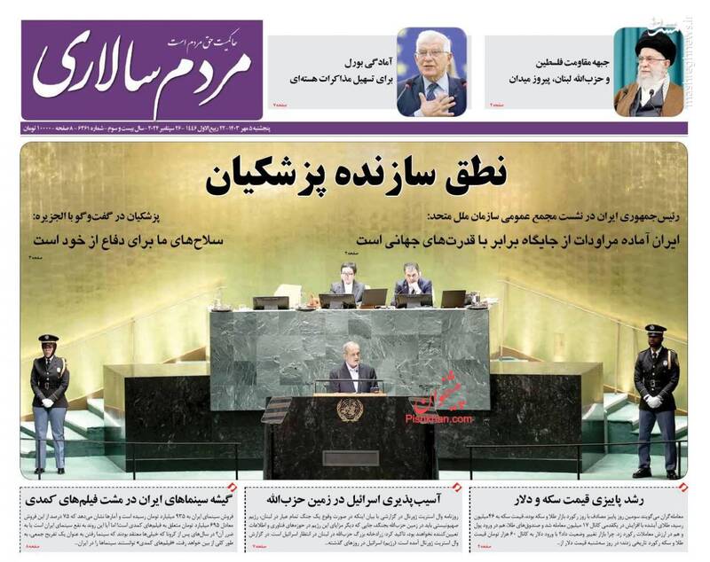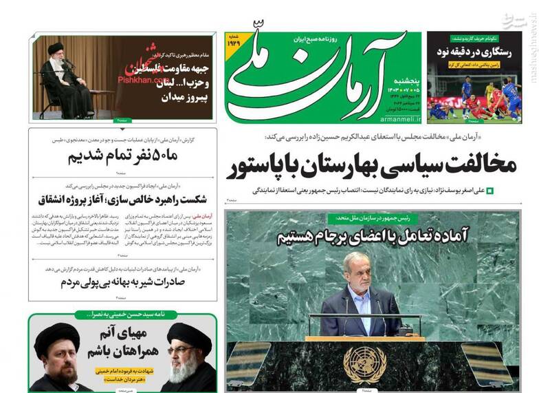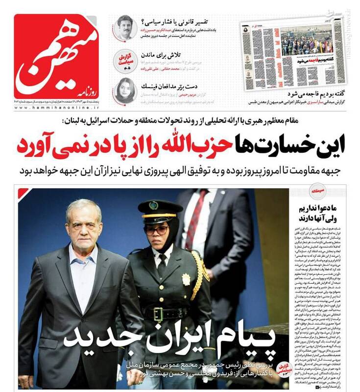 صفحه اول روزنامههای پنجشنبه ۵ مهر ۱۴۰۳