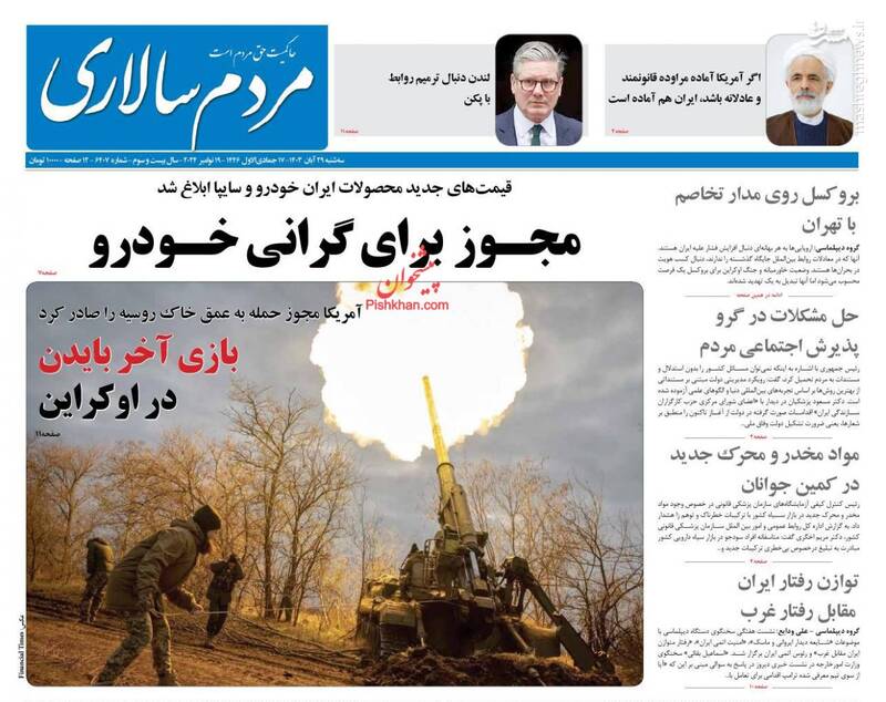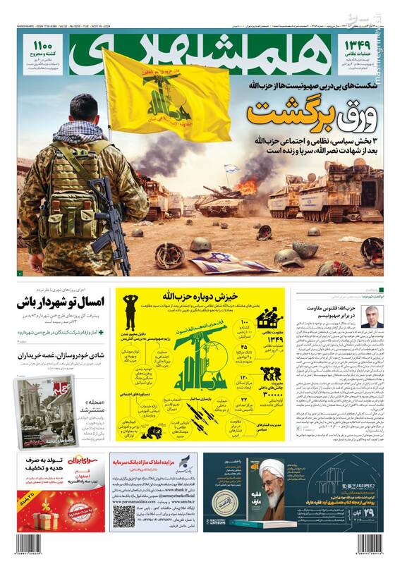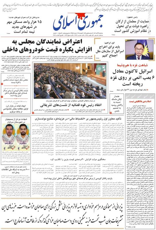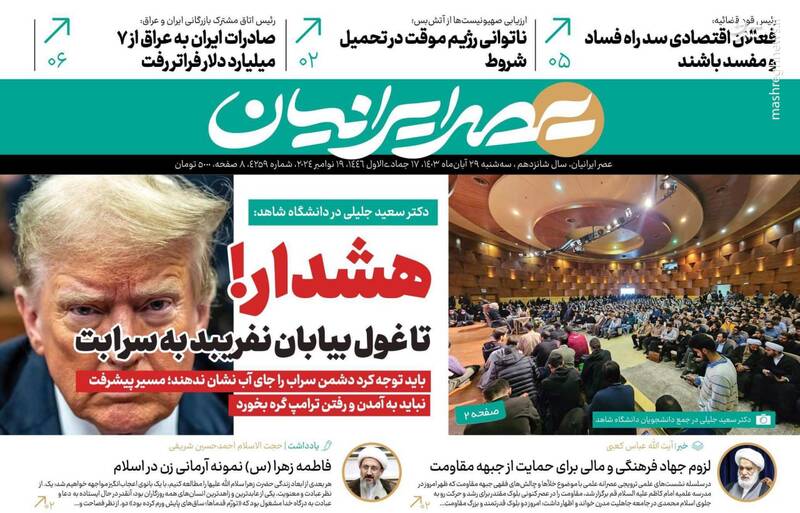 صفحه اول روزنامههای سهشنبه ۲۹ آبان ۱۴۰۳