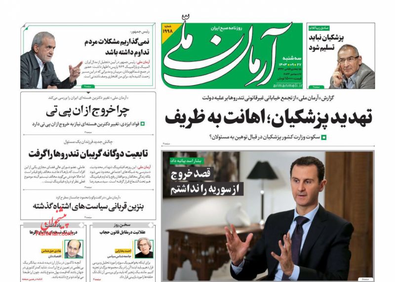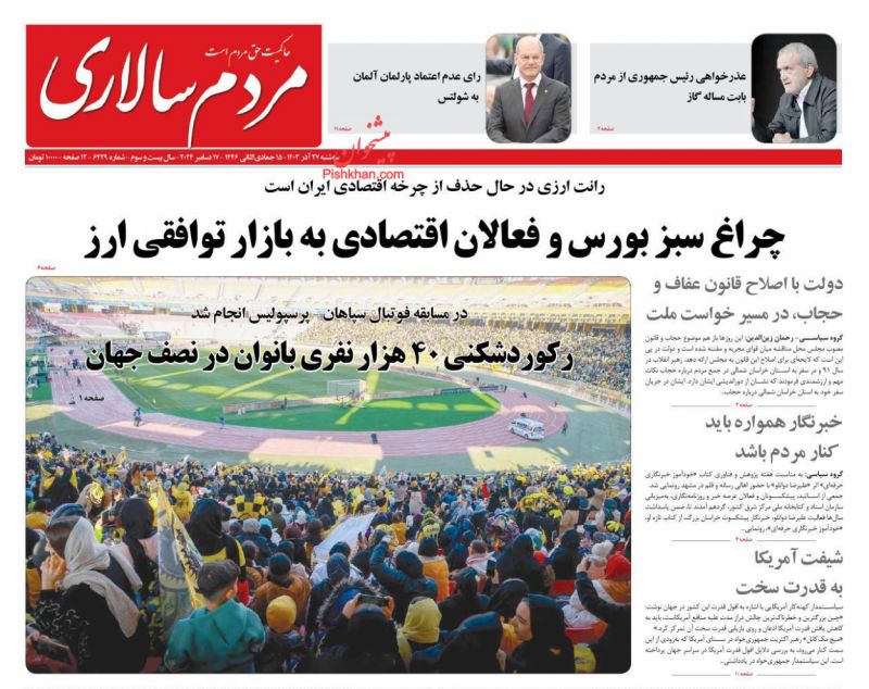 صفحه اول روزنامههای سه شنبه ۲۷ آذرماه ۱۴۰۳