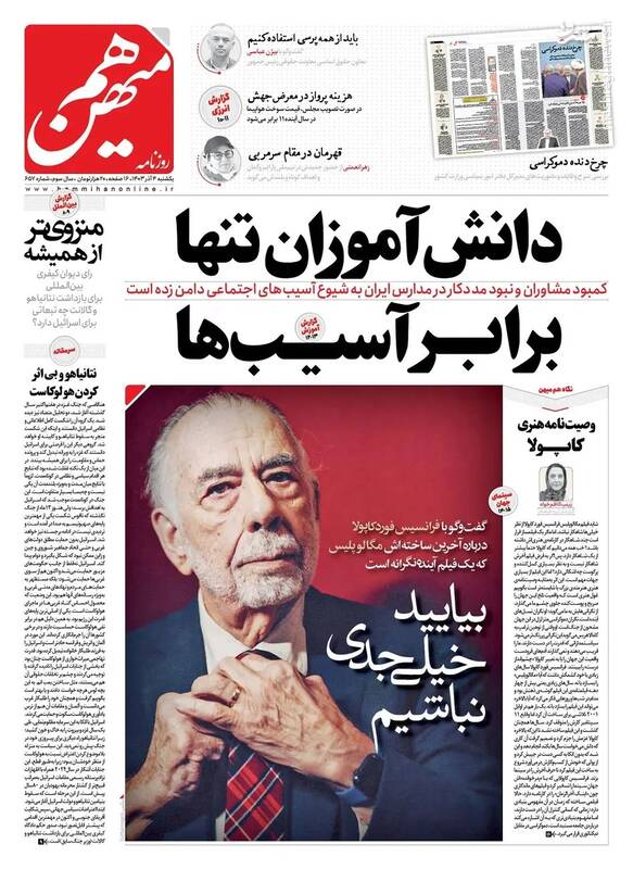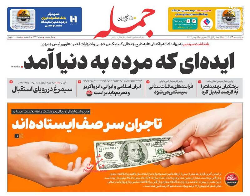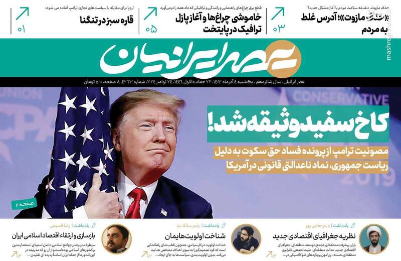 صفحه اول روزنامههای یکشنبه چهارم آذرماه ۱۴۰۳