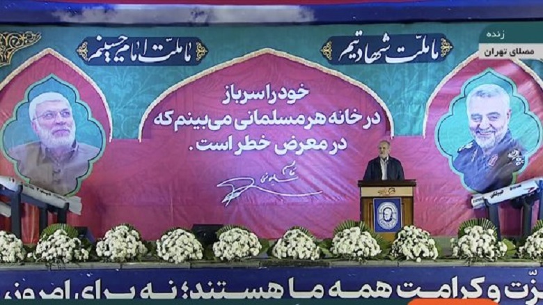به گزارش پایگاه اطلاع رسانی دیارمیرزا، مسعود پزشکیان شامگاه پنجشنبه در مراسم پنجمین سالگرد شهادت سردار سپهبد شهید حاج قاسم سلیمانی که در مصلای تهران با حضور قشرهای مختلف مردم و شخیصت های لشکری و کشوری برگزار شد، با تاکید بر اینکه باید با همبستگی نقشههای شوم دشمن را نقش بر آب کنیم، افزود: این تلاش با خدمتگزاری به مردم عزیز ایران اتفاق میافتد؛ باید خود را موظف به خدمت به مردم عزیز ایران مستقل از زبان، قومیت، منطقه و مذهب بدانیم.