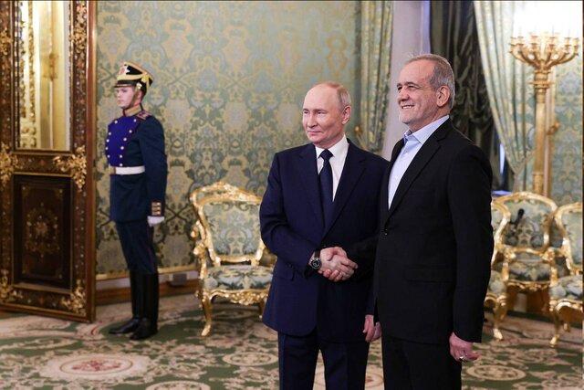 مسعود پزشکیان در نشست خبری مشترک با ولادیمیر پوتین رئیس جمهور روسیه پس از امضای اسناد همکاری راهبردی دو کشور، اظهار کرد: امیدوارم شاهد فصل جدیدی از همکاری راهبردی بین دو کشور باشیم. روسیه از جایگاهی ممتاز در سیاست همسایگی ایران دارد. در مذاکرات امروز چگونگی گسترش همکاری های اقتصادی و تجاری دو کشور مورد رایزنی قرار گرفت، موانع و راه حل ها بررسی شد و گفت و گوهای مثبتی درباره مسائل منطقه ای و بین المللی داشتیم. سند همکاری جامعه فصل جدیدی در رابطه دو کشور خواهد گشود. این سند مسیر توسعه همکاری دو کشور را هموار کند.