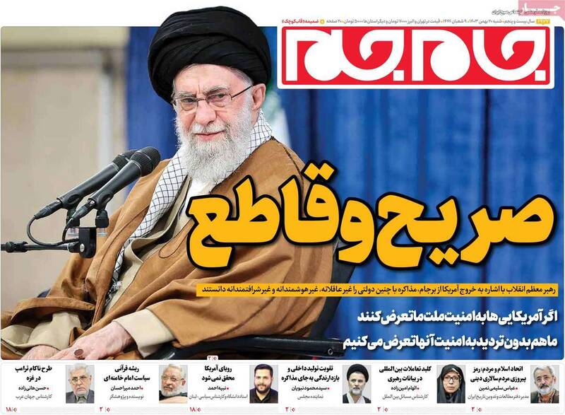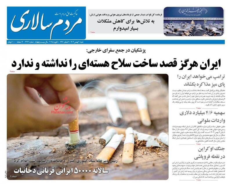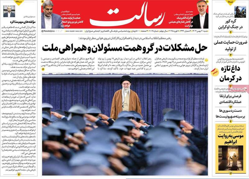 صفحه اول روزنامههای شنبه ۲۰ بهمن ۱۴۰۳