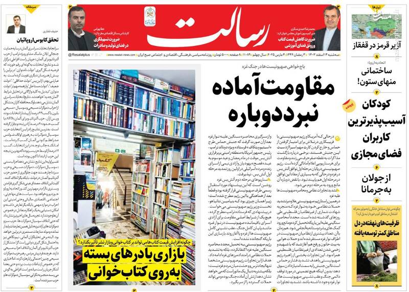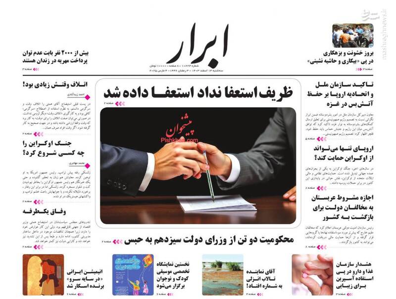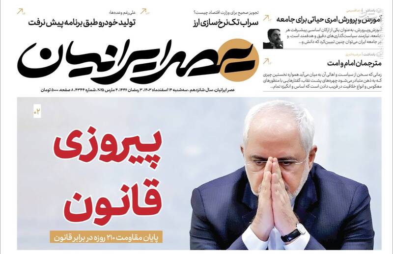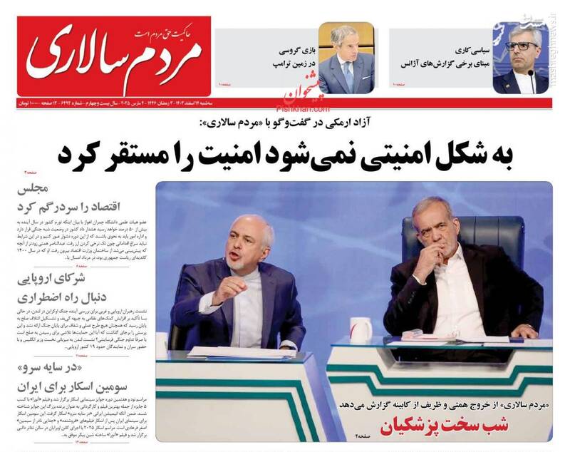 صفحه اول روزنامههای سهشنبه ۱۴ اسفند ۱۴۰۳