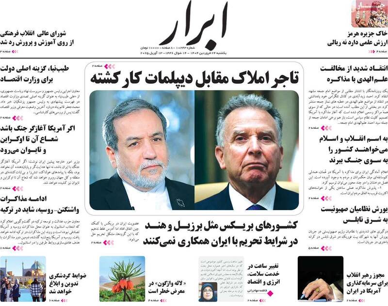صفحه اول روزنامههای یکشنبه ۲۴ فروردین ۱۴۰۴