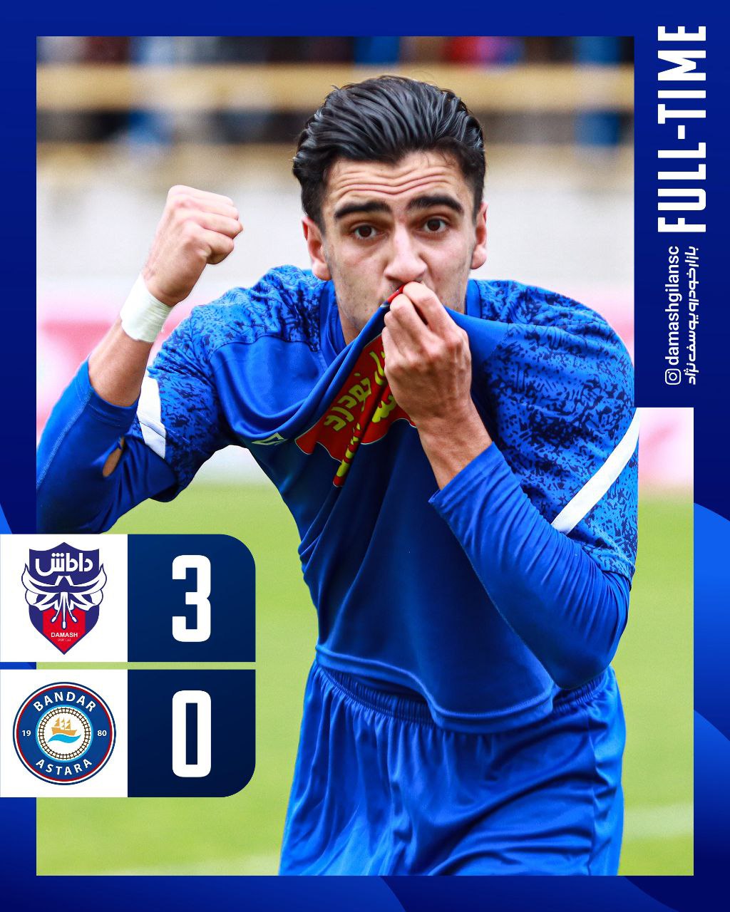 عصر امروز (جمعه)، تیم فوتبال داماش گیلان موفق شد در ورزشگاه شهید عضدی رشت، با نتیجه ۳ بر ۰ برابر شهرداری آستارا به برتری دست یابد.