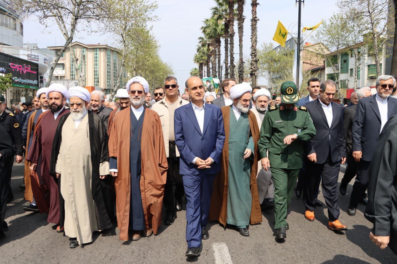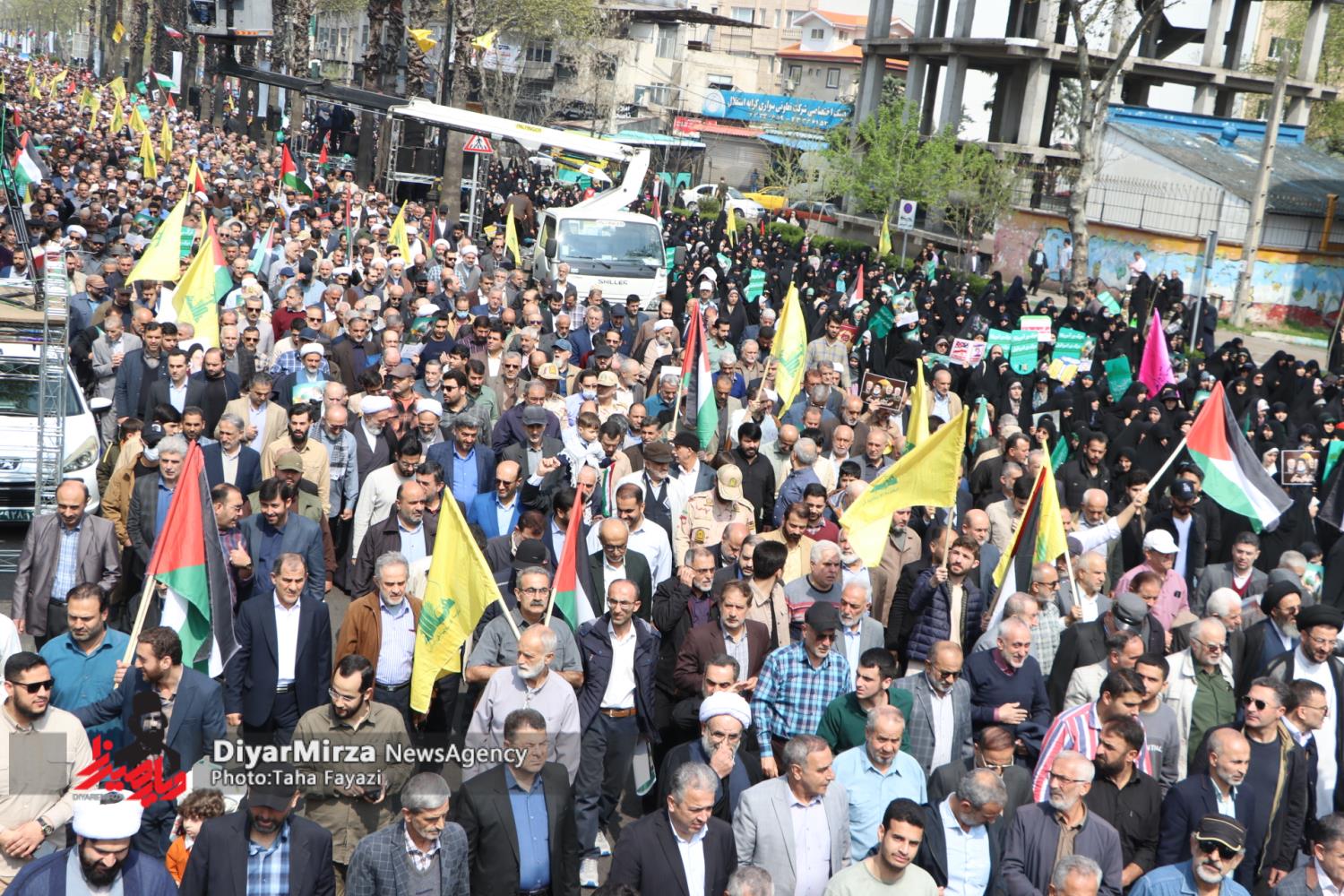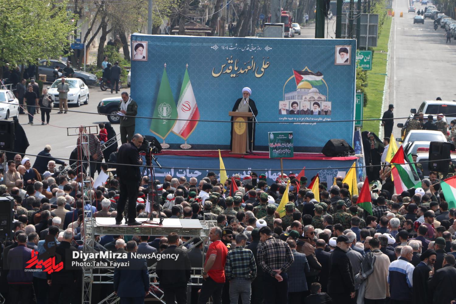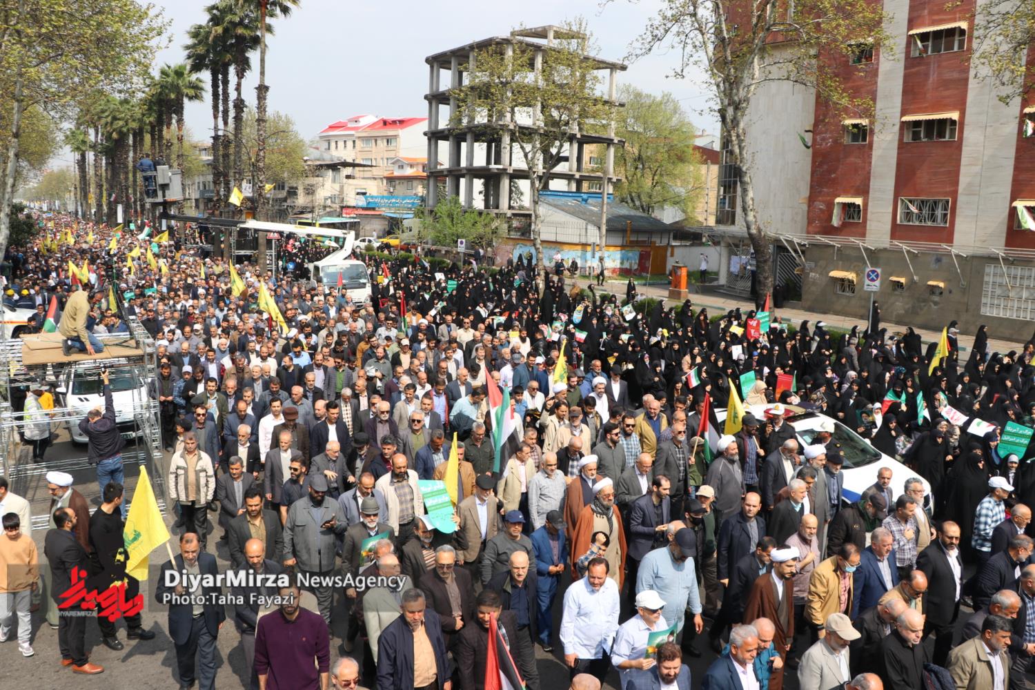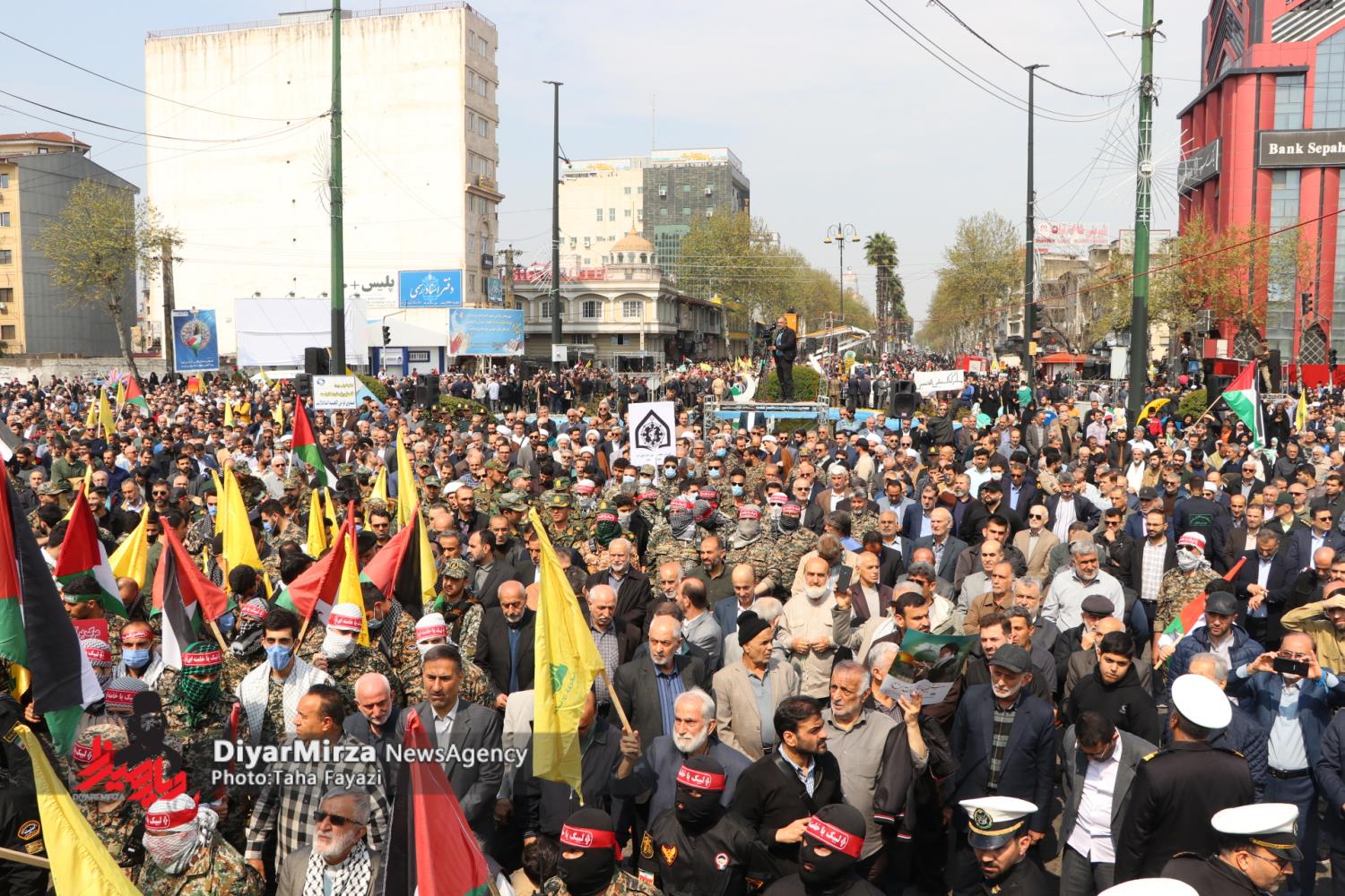 همزمان با آخرین جمعه ماه مبارک رمضان و روز جهانی قدس، مردم شهر رشت همانند سالهای گذشته با حضور گسترده بار دیگر حمایت خود را از ملت مظلوم فلسطین به نمایش گذاشتند.