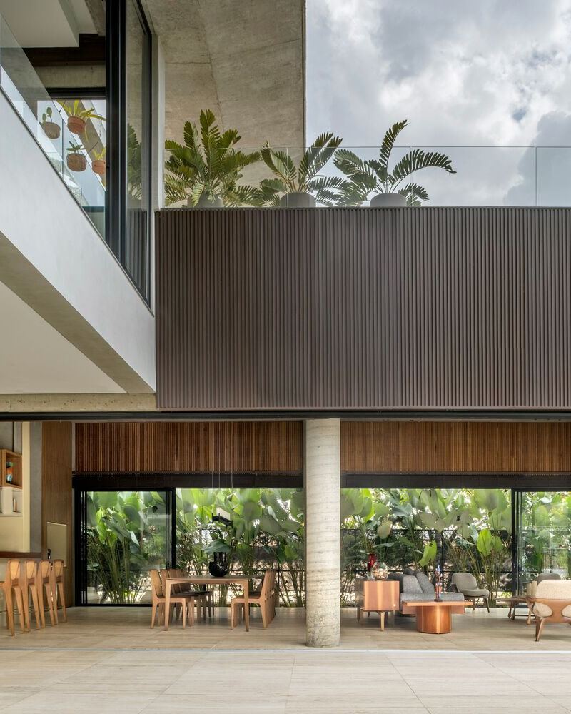 به گزارش عصر ایران؛ طراحی باز طبقه همکف، فضاهای اجتماعی را حول یک ایوان، استخر و سونا سازماندهی کرده است. در مقابل، طبقه بالا دارای حجمهای خطی و سبکتر بوده و یک تراس بام به عنوان باغ ارکیده طراحی شده است.
