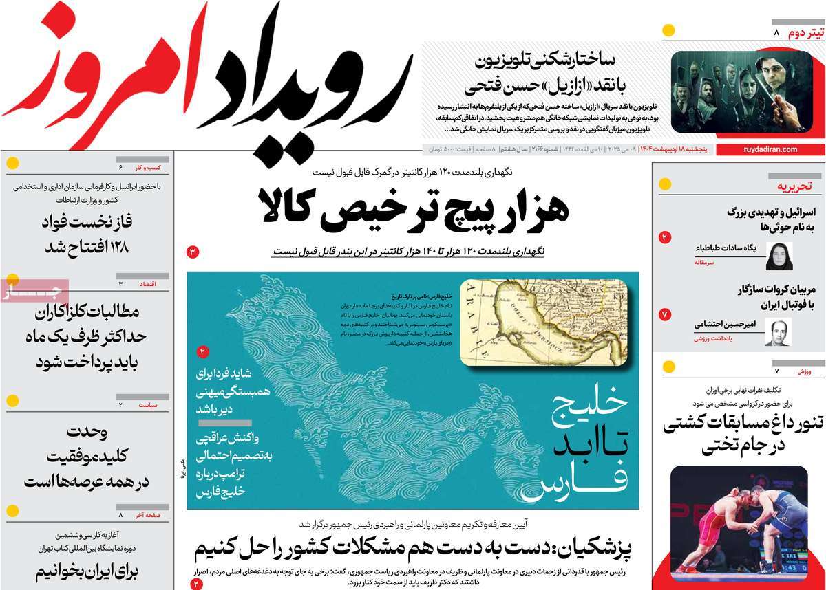 صفحه اول روزنامههای پنجشنبه ۱۸ اردیبهشت ۱۴۰۴