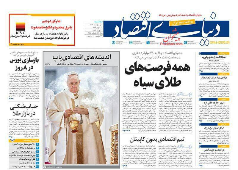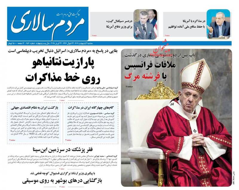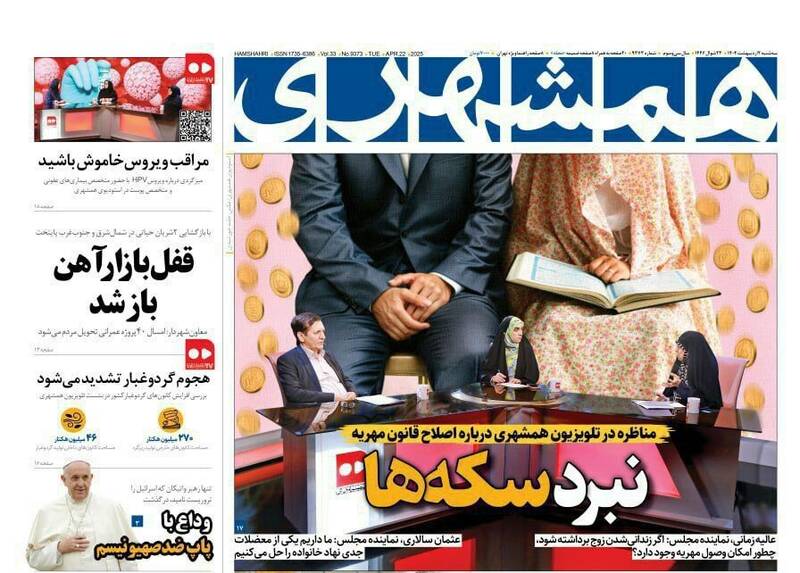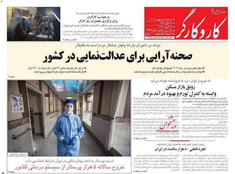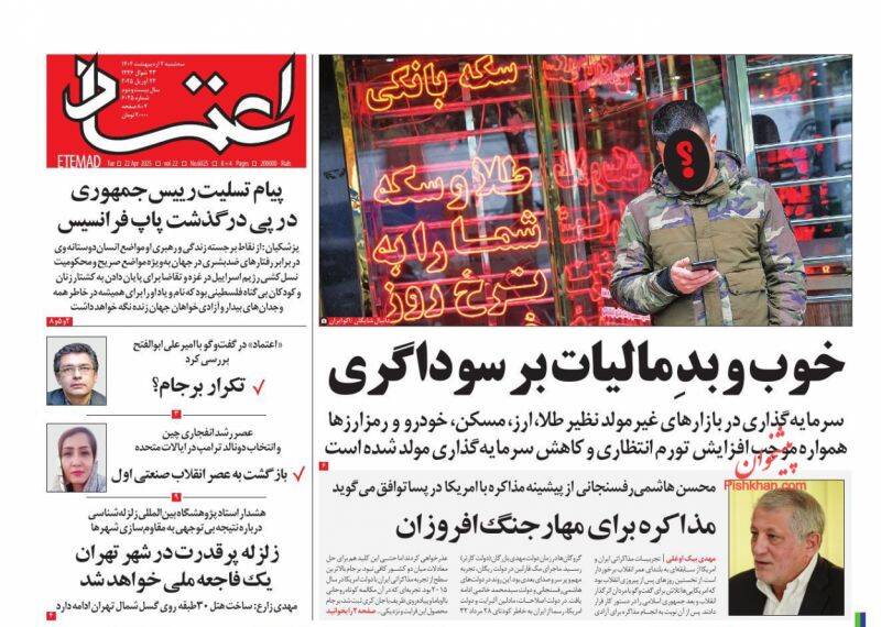 صفحه اول روزنامههای سهشنبه ۲ اردیبهشت ۱۴۰۴