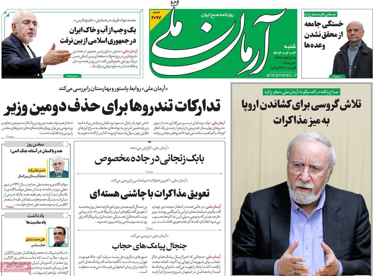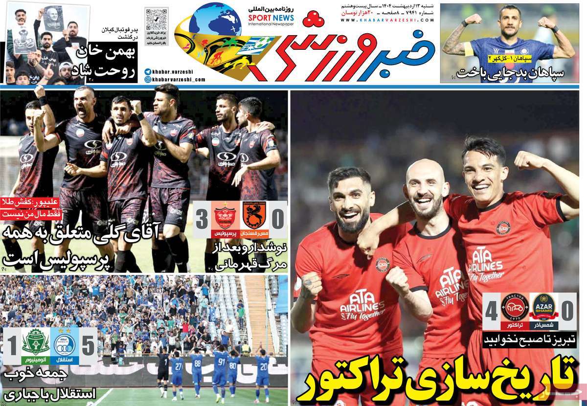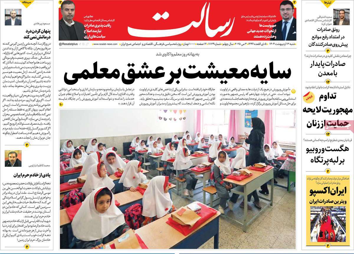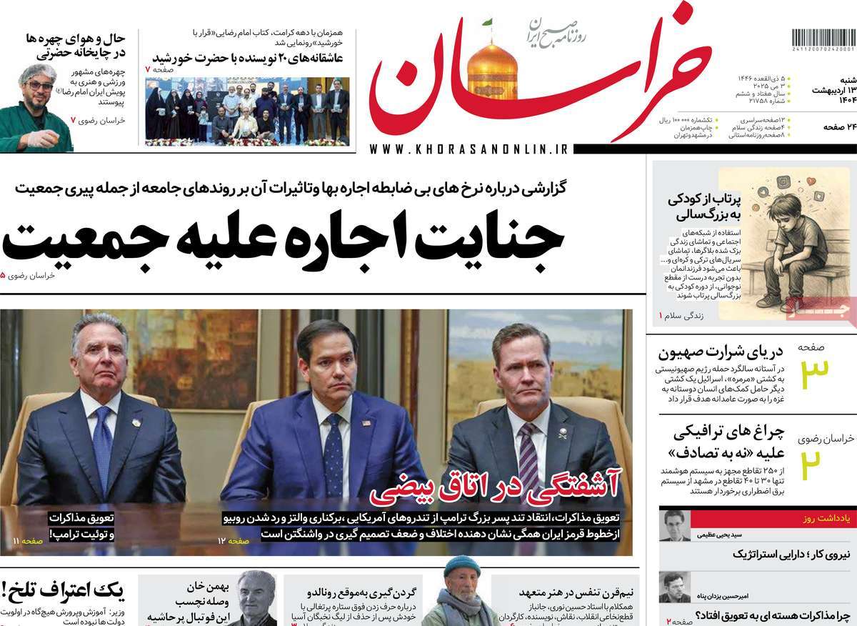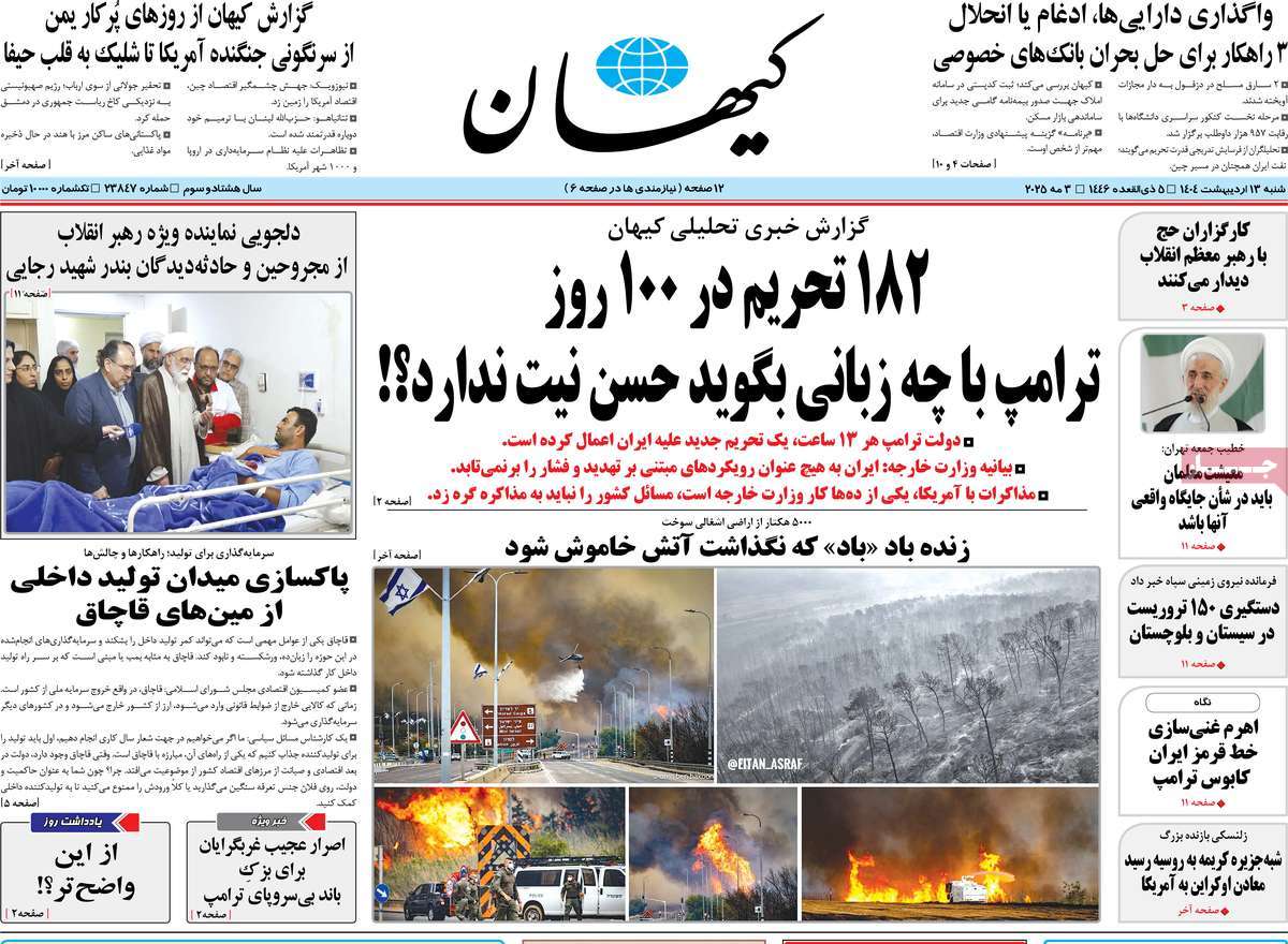 صفحه اول روزنامههای شنبه ۱۳ اردیبهشت ۱۴۰۴