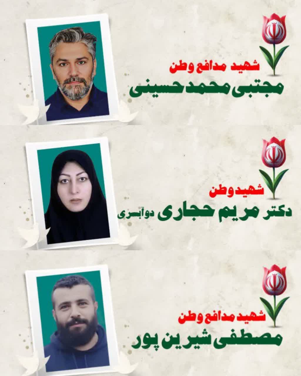 در پی حملات تروریستی و تجاوزگرانه رژیم صهیونیستی، سه فرزند گیلان با نامهای «مصطفی شیرینپور»، «دکتر مریم حجاری» و «مجتبی محمدحسینی» به فیض شهادت رسیدند.