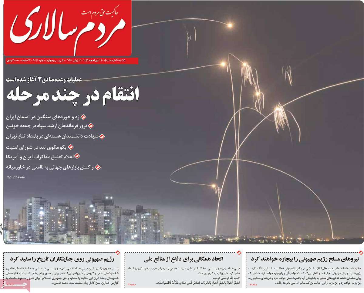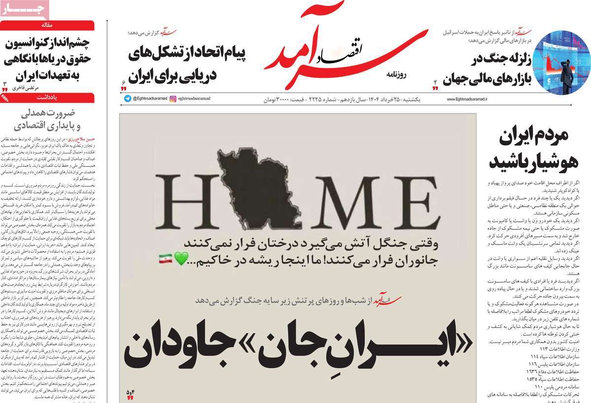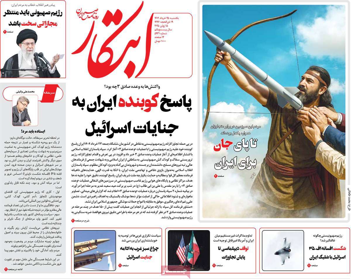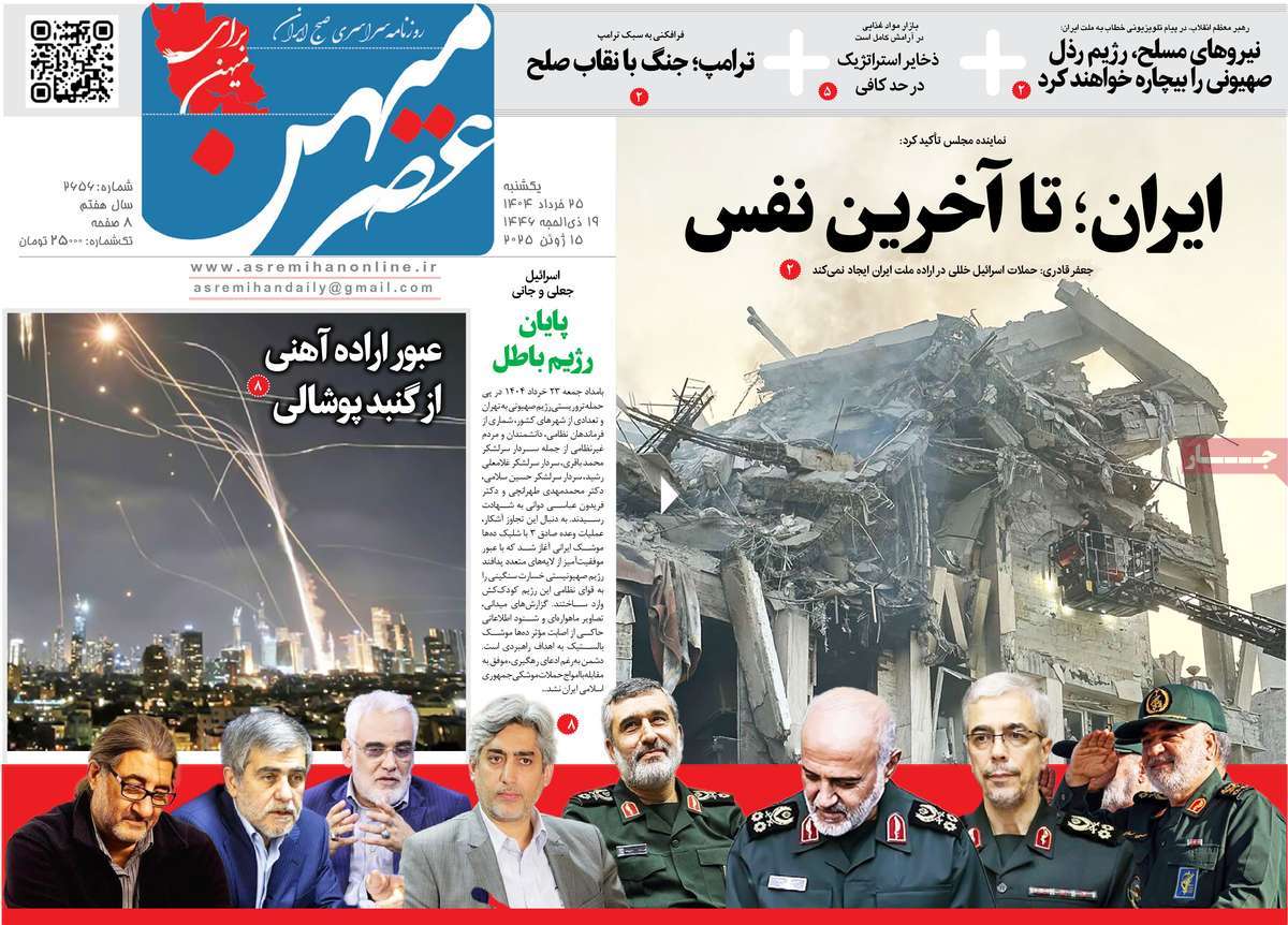 صفحه اول روزنامههای یکشنبه ۲۵ خرداد ۱۴۰۴