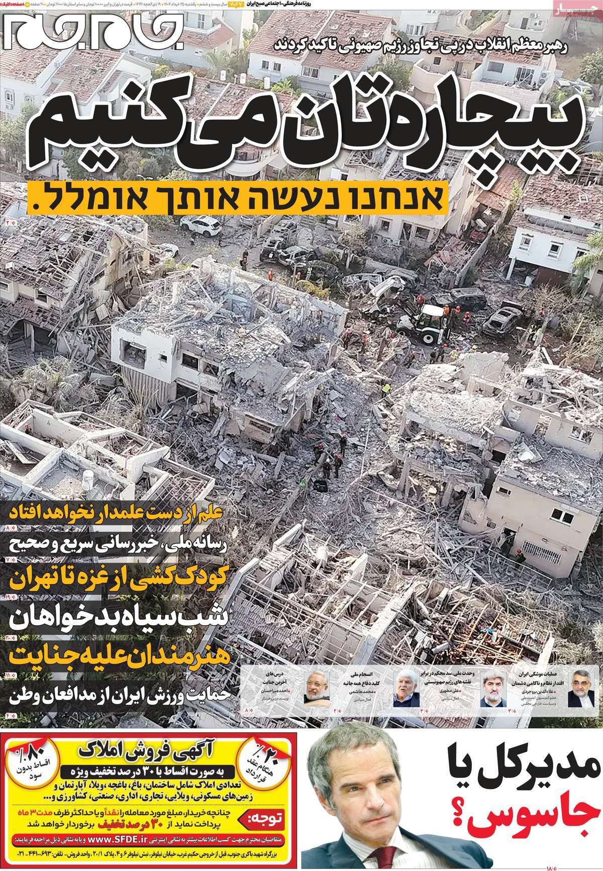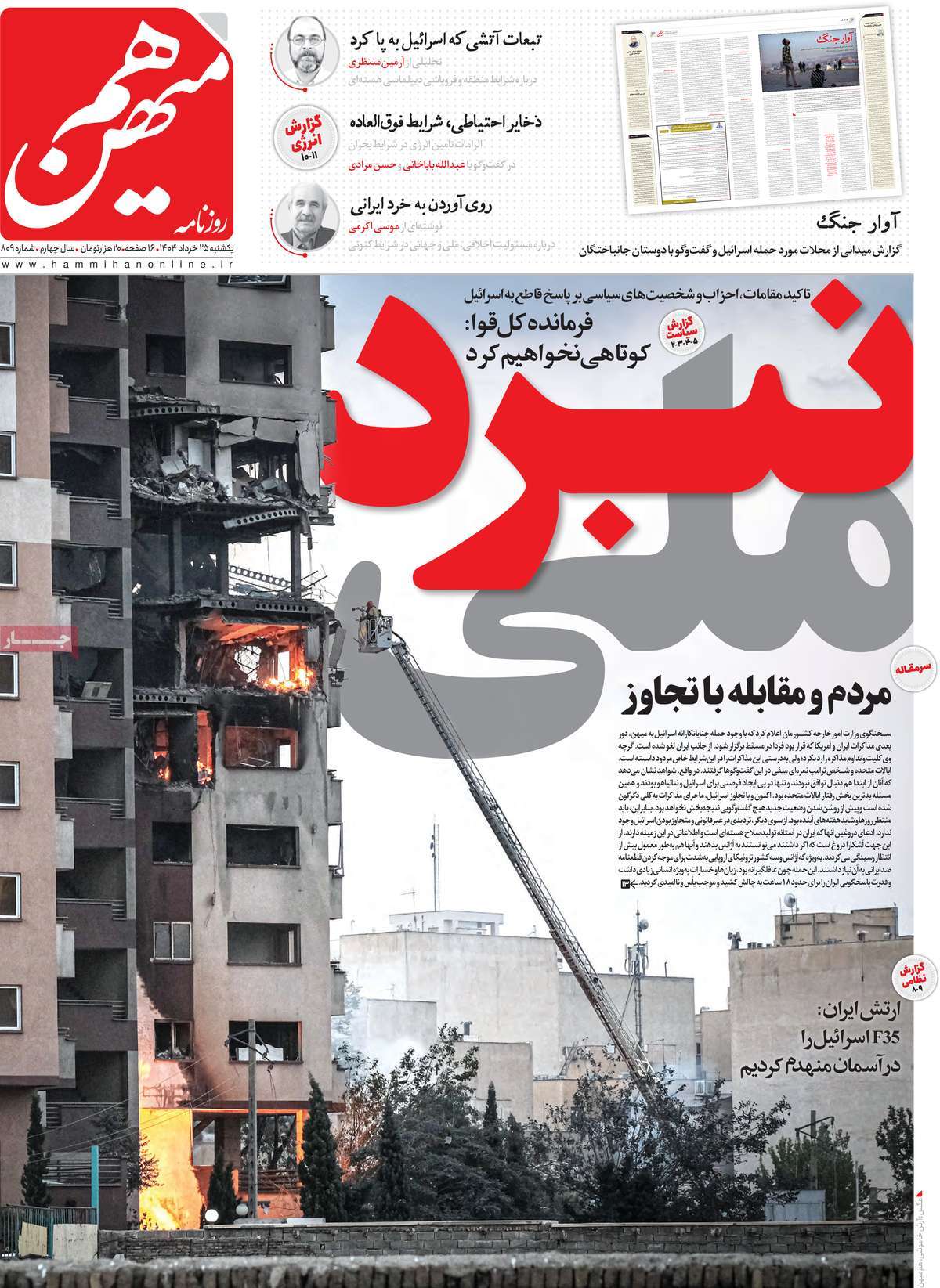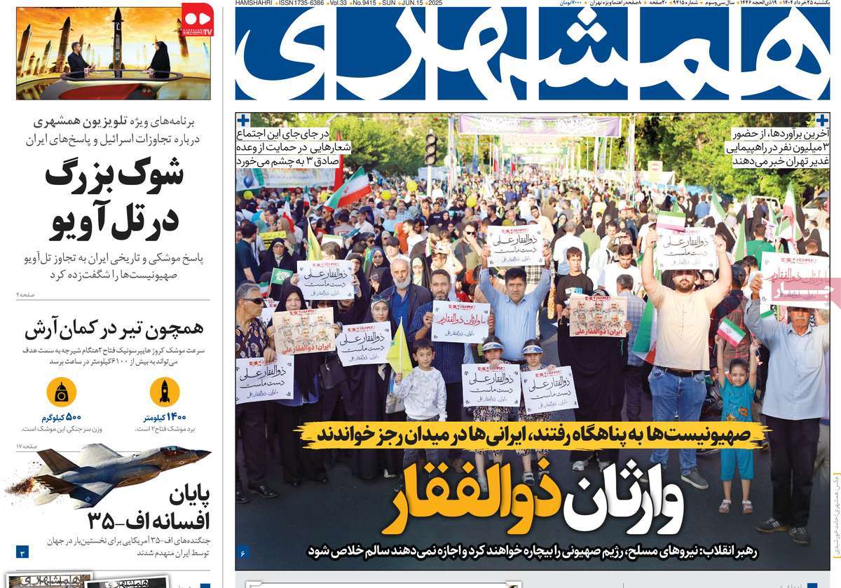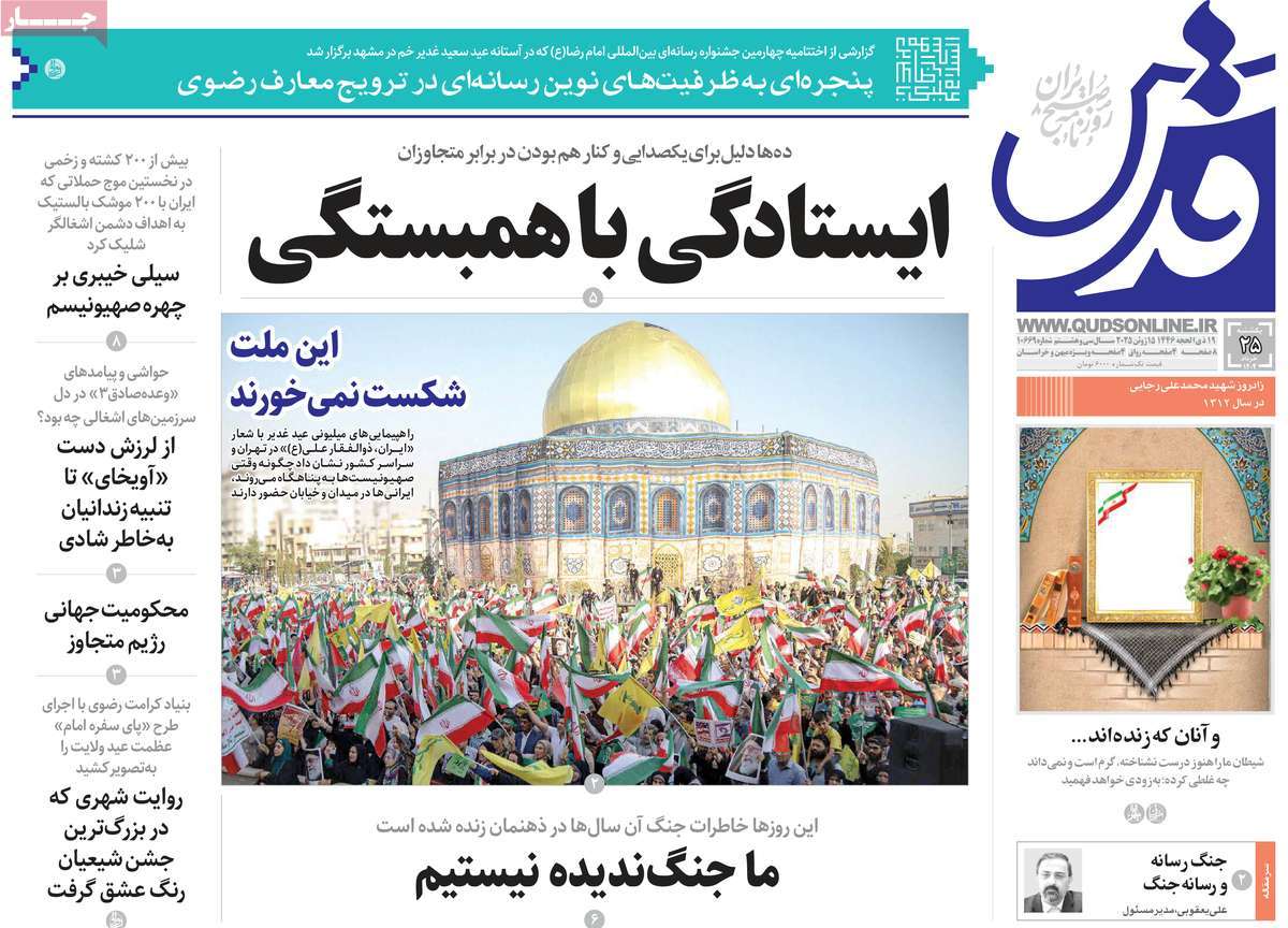 صفحه اول روزنامههای یکشنبه ۲۵ خرداد ۱۴۰۴