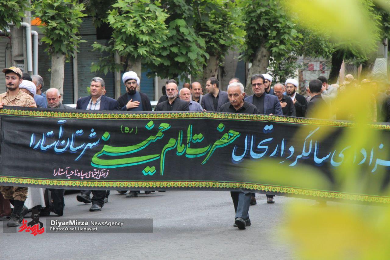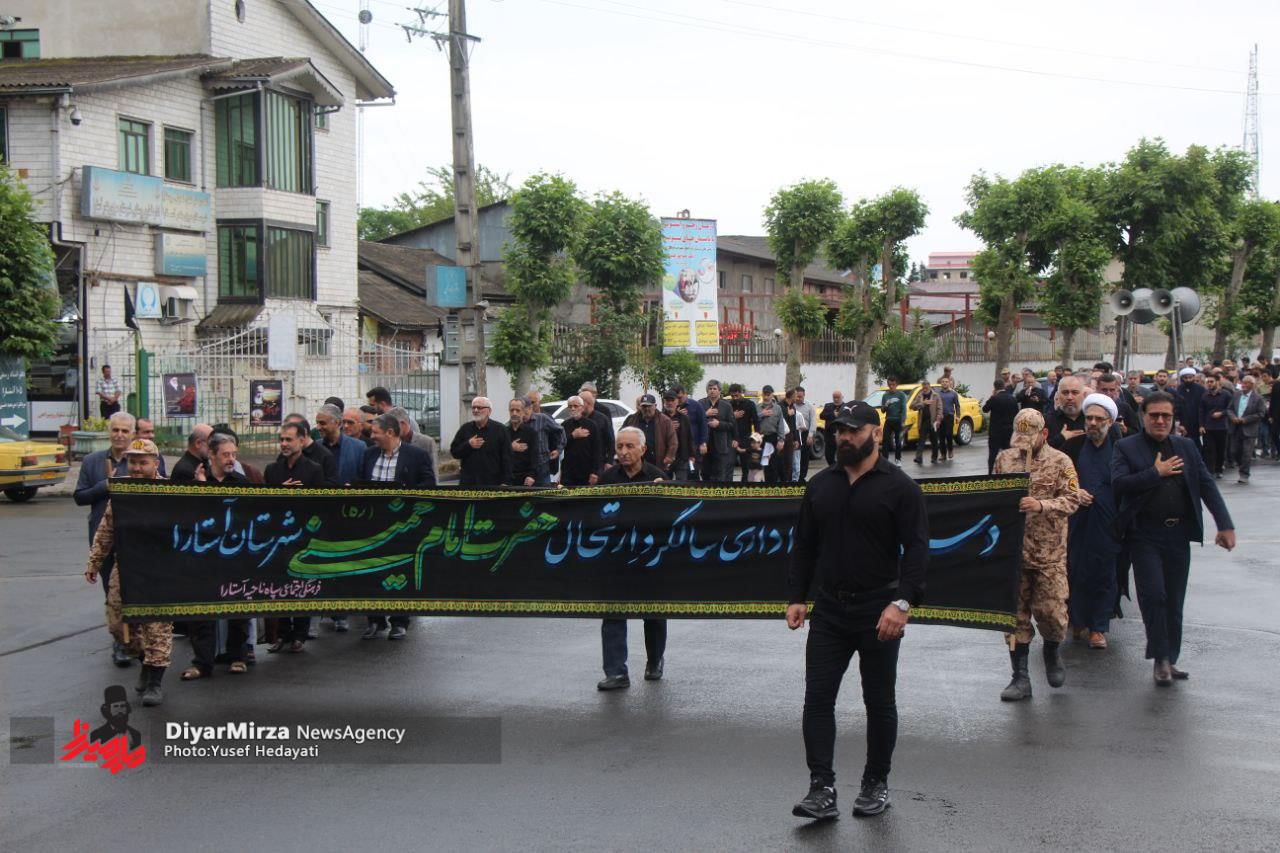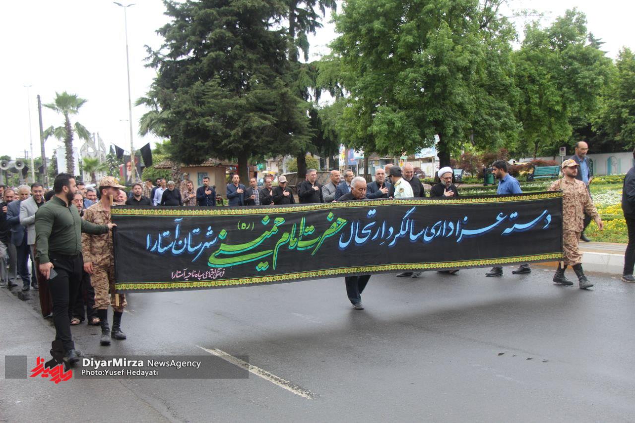 یوسف هدایتی: جمعی از مردم و مسئولان آستارا در سالروز ارتحال حضرت امام خمینی (ره)، با ترتیب دستههای عزاداری و حمل پرچمهای سیاه، از مقابل سپاه تا مصلای نماز جمعه این شهر عزاداری کردند.
