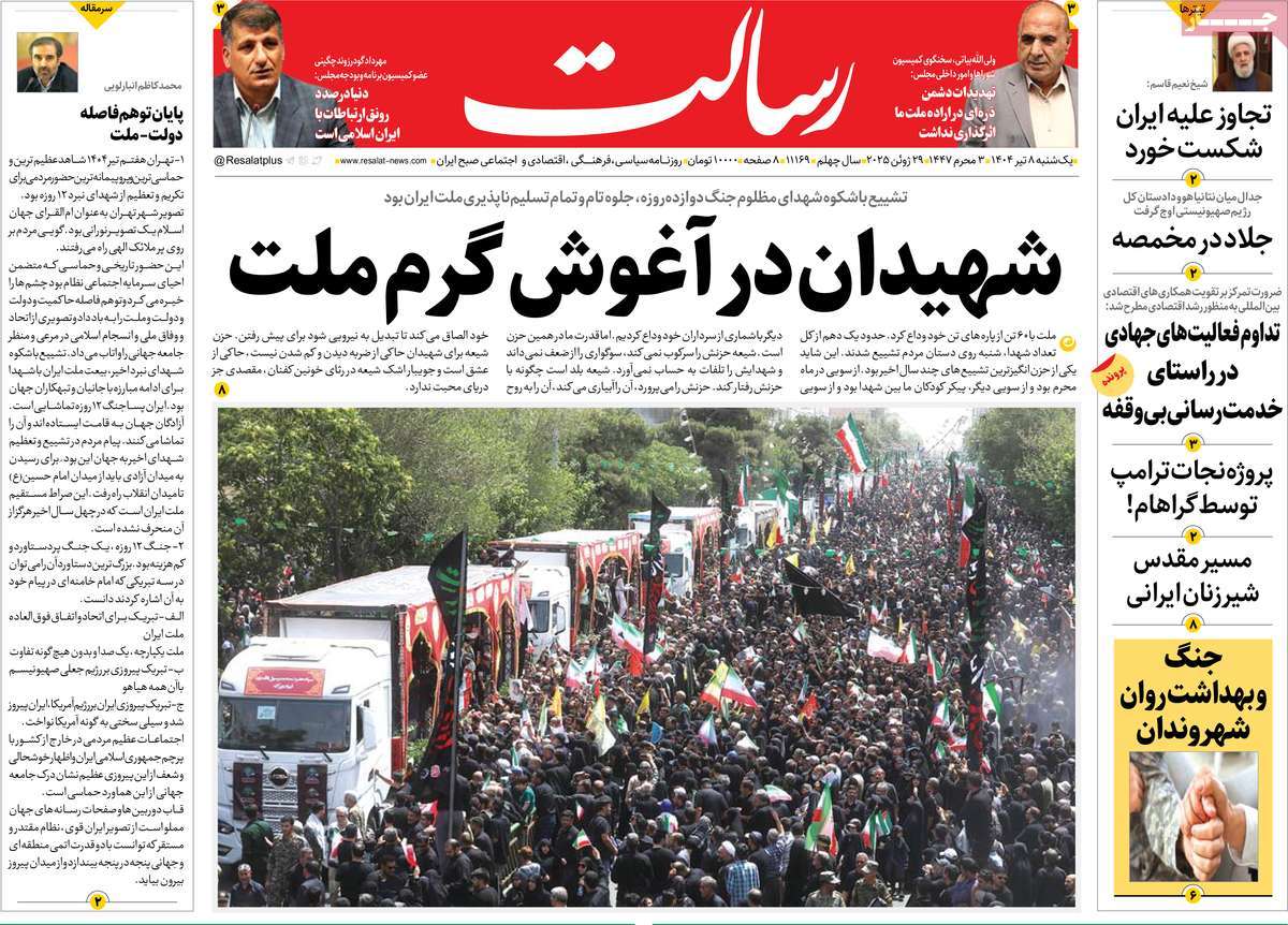 صفحه اول روزنامههای یکشنبه ۸ تیر ۱۴۰۴