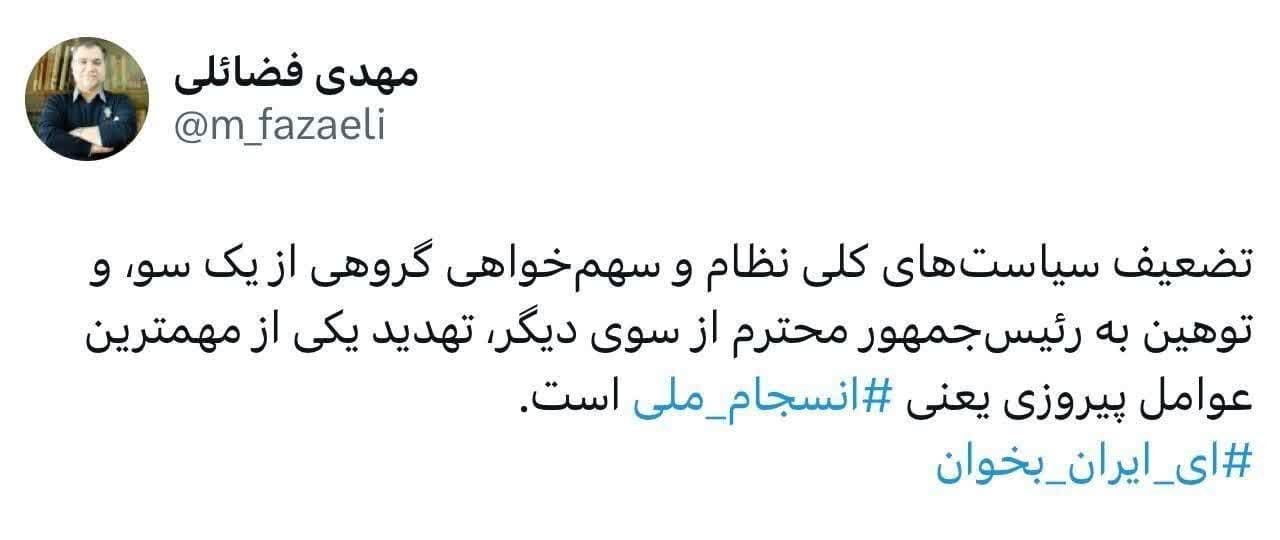 📸تذکر عضو دفتر حفظ و نشر آثار رهبر انقلاب به تندروهای دو جریان سیاسی کشور : انسجام ملی را تهدید نکنید.