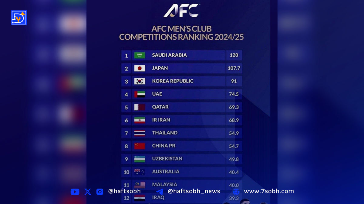 ایران در رتبه ششم برترین لیگهای فوتبال قاره آسیا