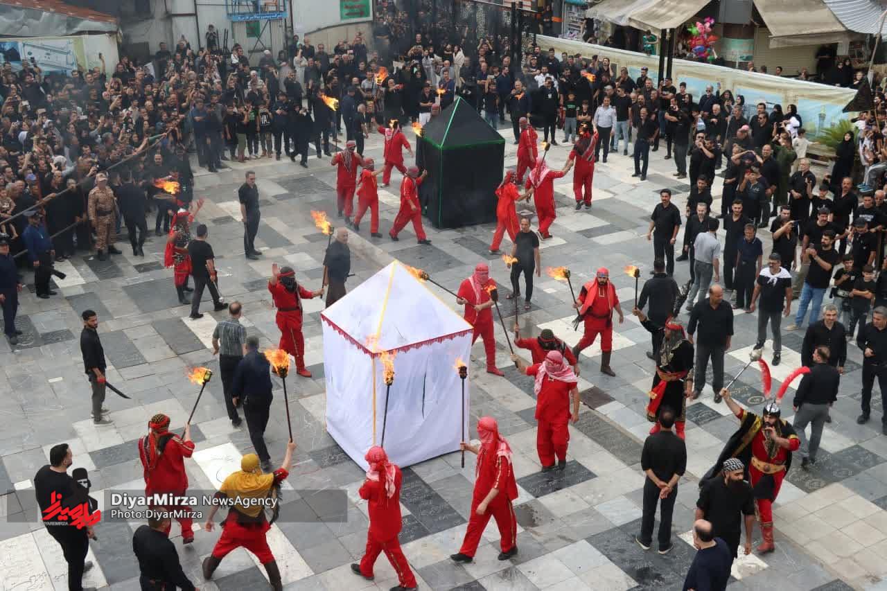 آیین سنتی آتش زدن خیام حسینی در آستان مقدس حضرت سلطان سیدجلال الدین اشرف علیه السلام همزمان با عاشورای حسینی برگزار شد. عکاس: امیرعلی رسولیان و نیما مهدیپور