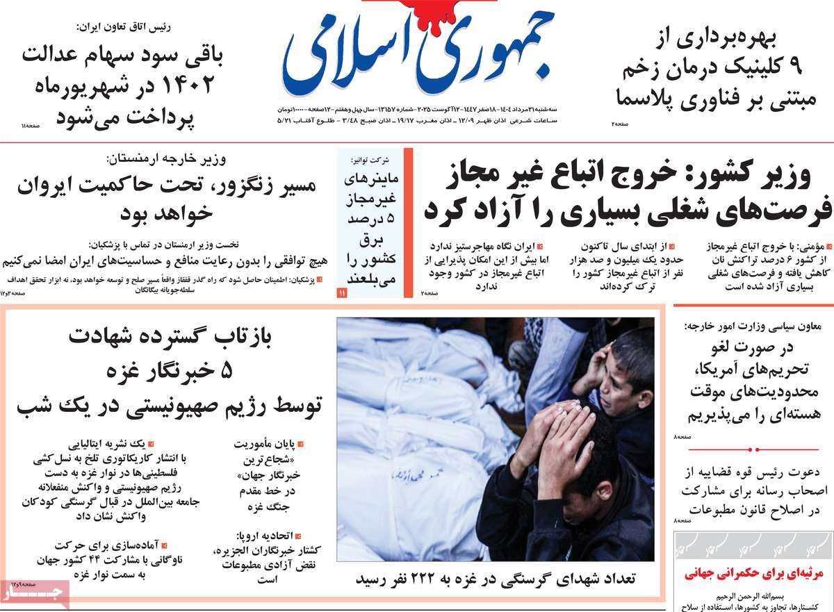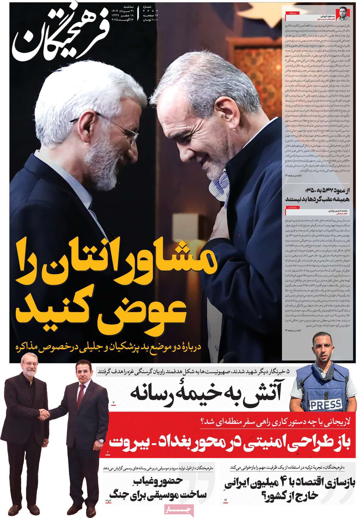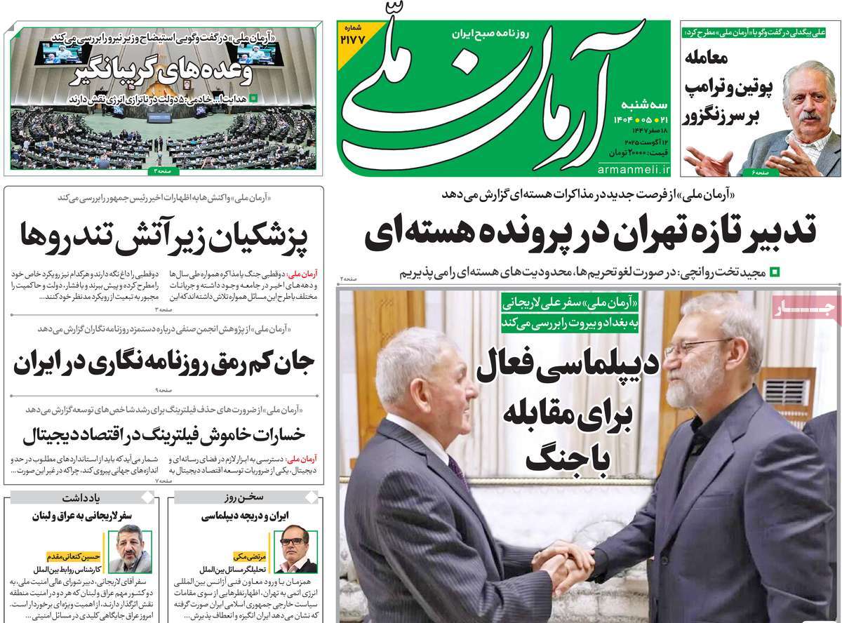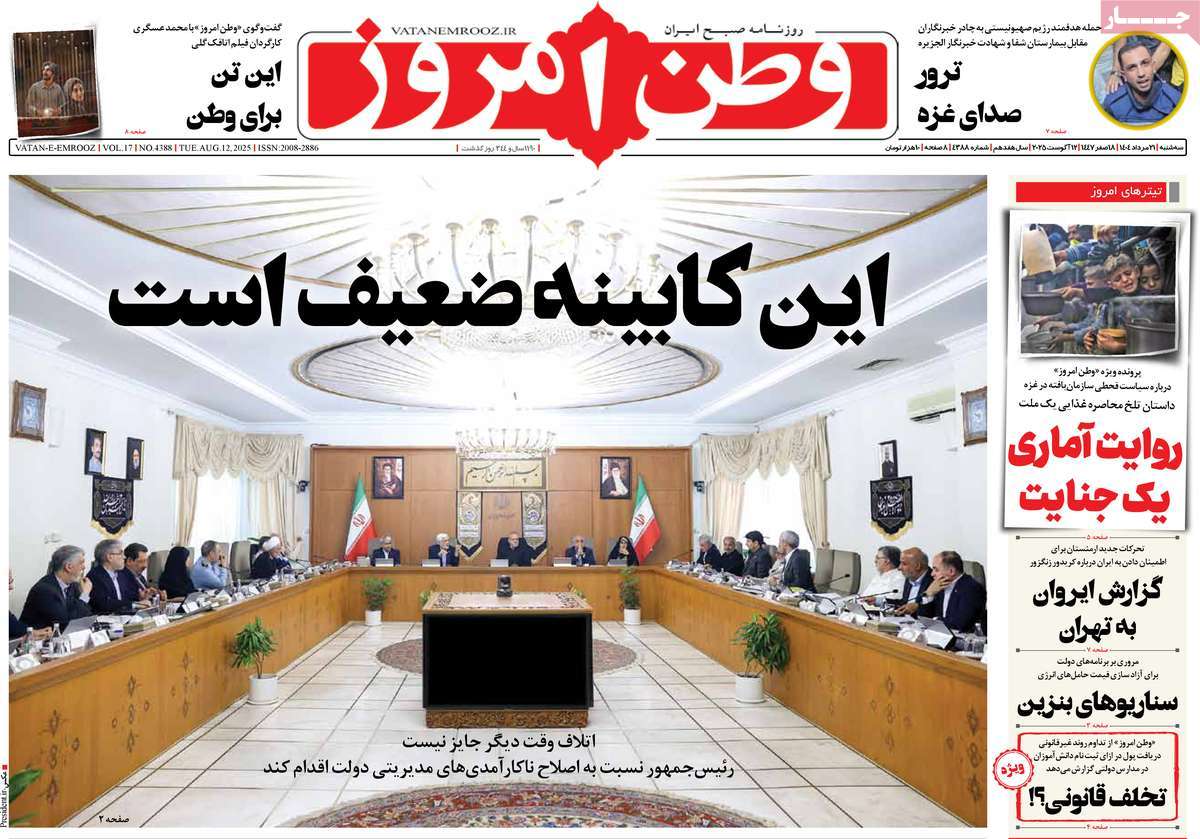 صفحه اول روزنامههای سهشنبه ۲۱ مرداد ۱۴۰۴