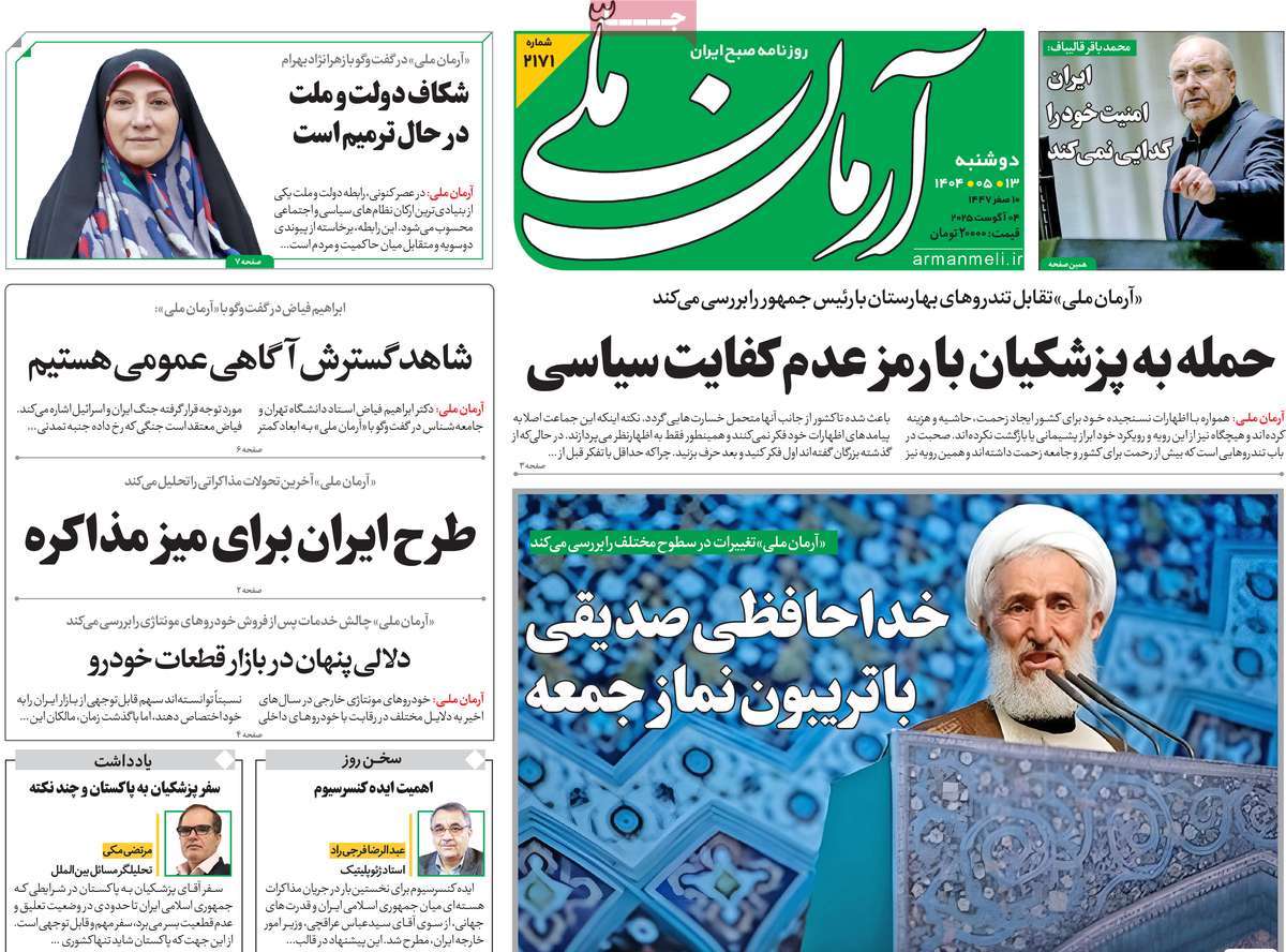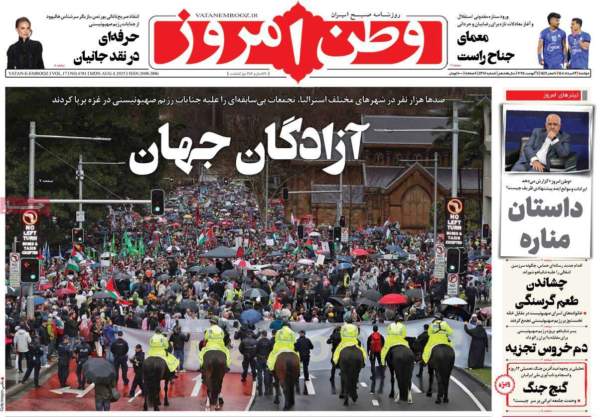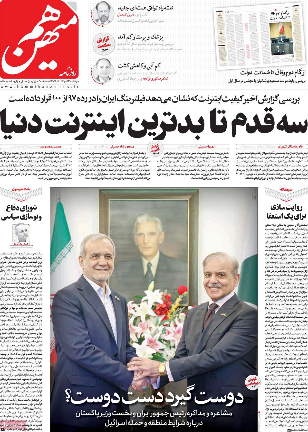 صفحه اول روزنامههای دوشنبه ۱۳ مرداد ۱۴۰۴