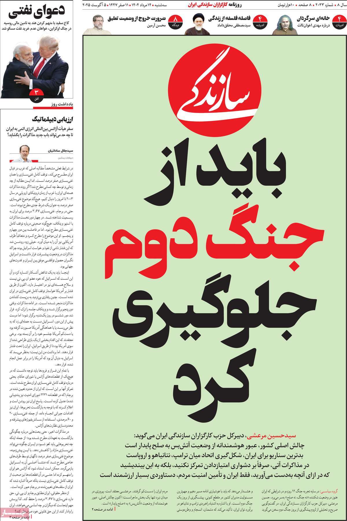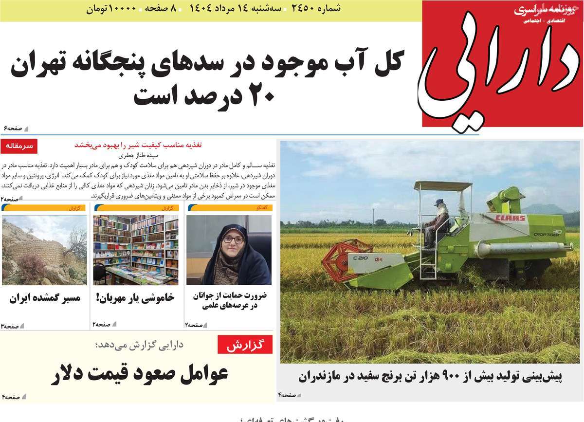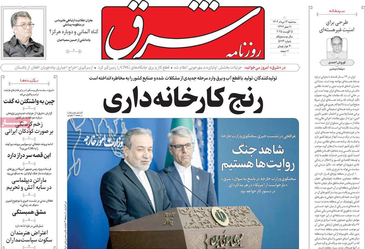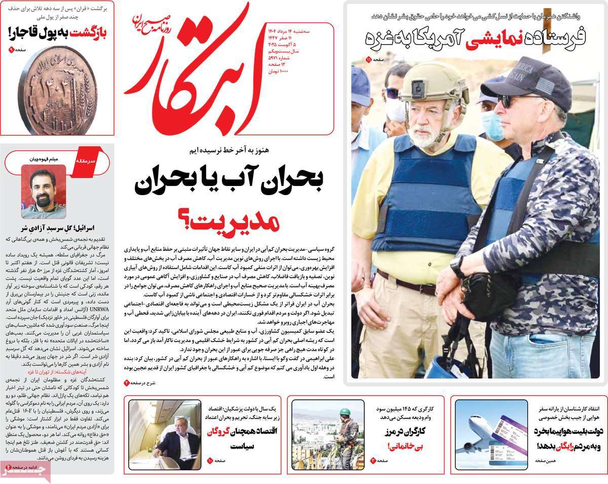 صفحه اول روزنامههای سهشنبه ۱۴ مرداد ۱۴۰۴