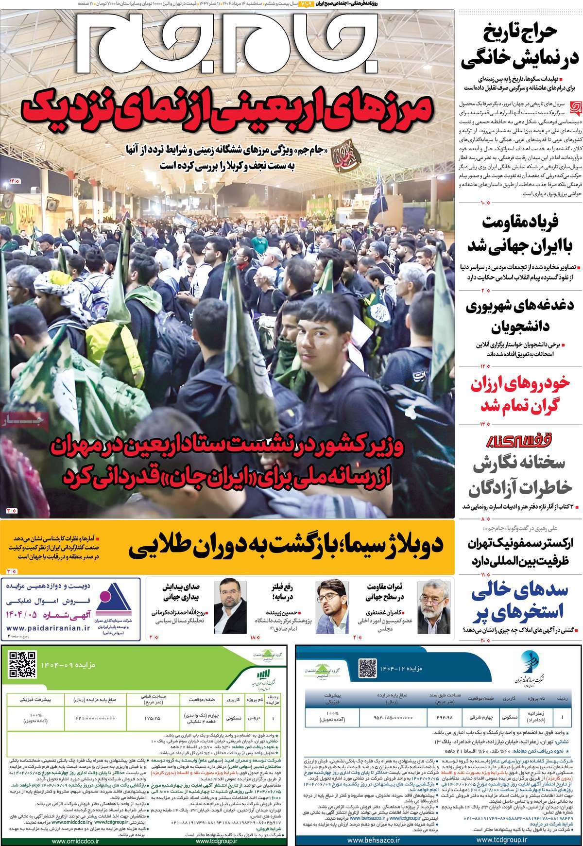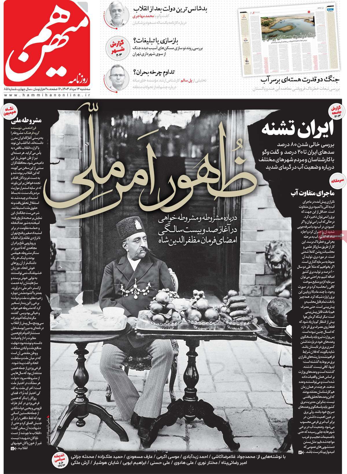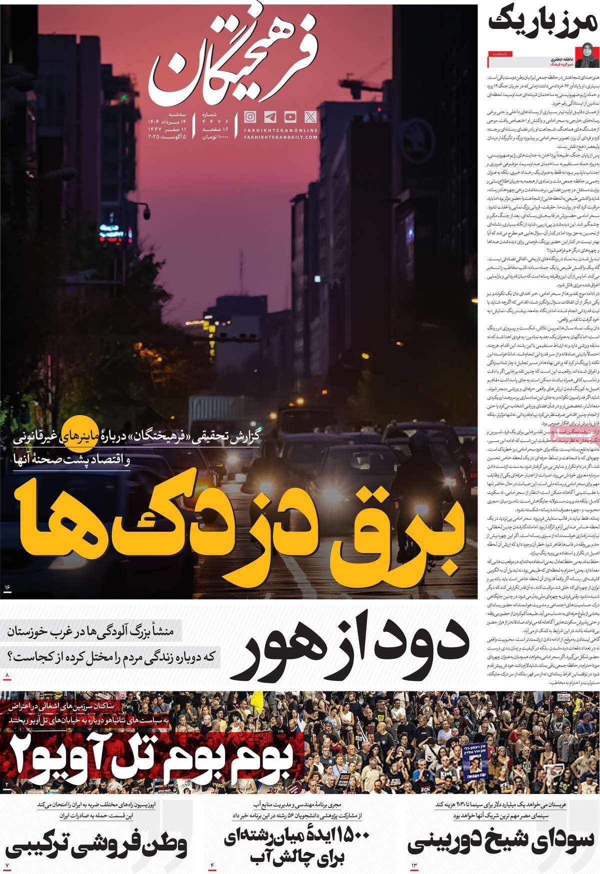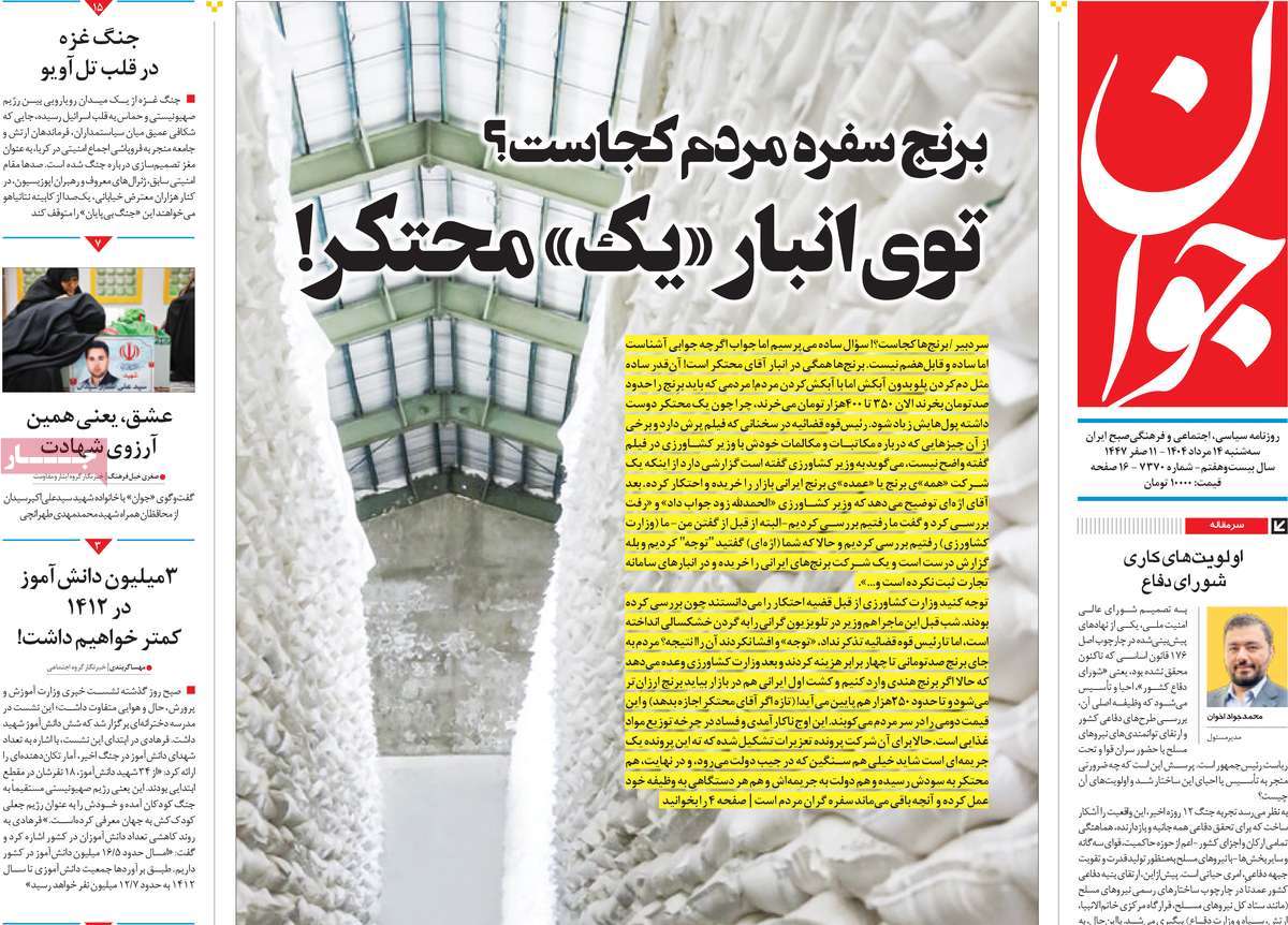 صفحه اول روزنامههای سهشنبه ۱۴ مرداد ۱۴۰۴