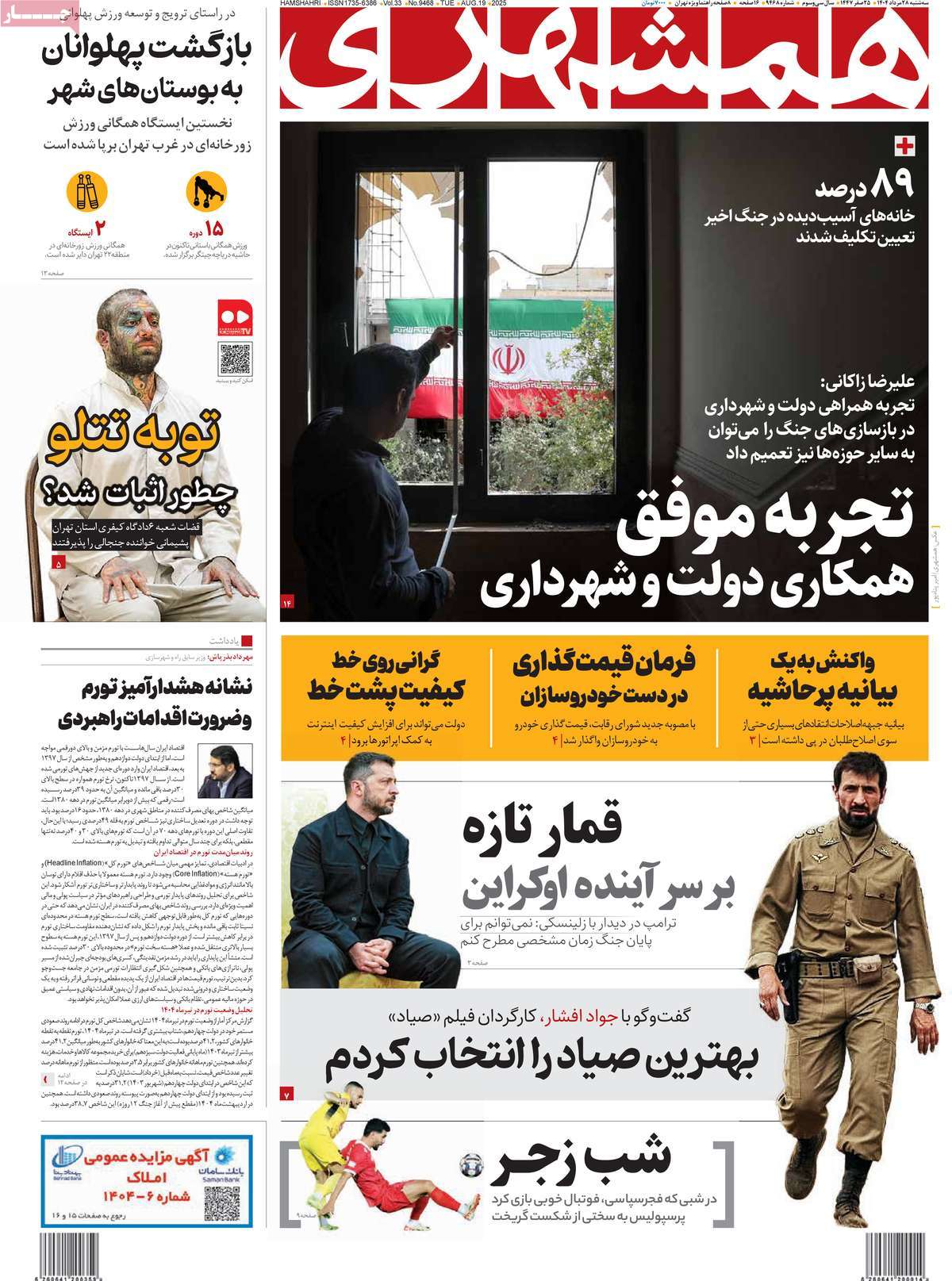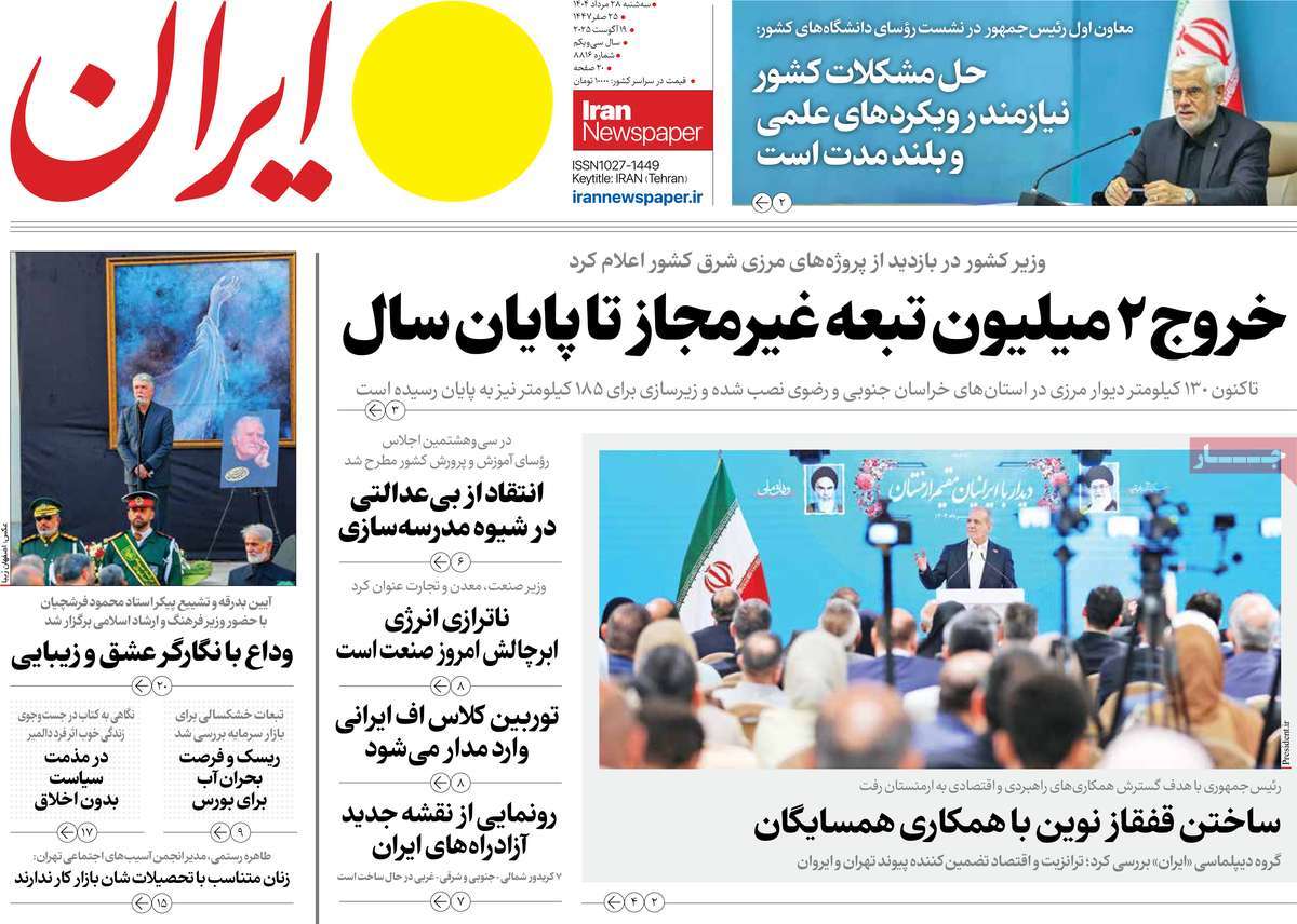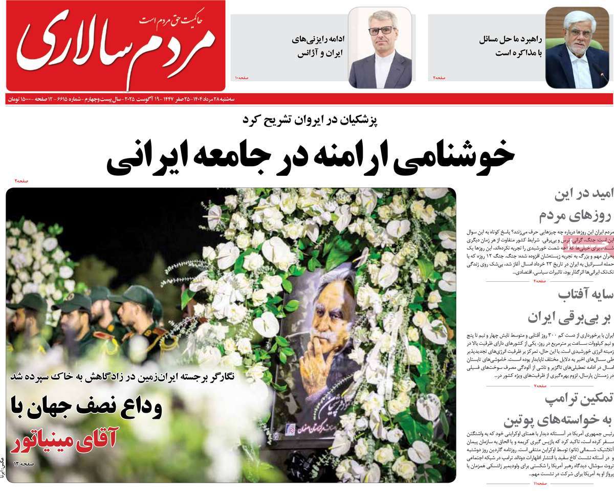 صفحه اول روزنامههای سهشنبه ۲۸ مرداد ۱۴۰۴