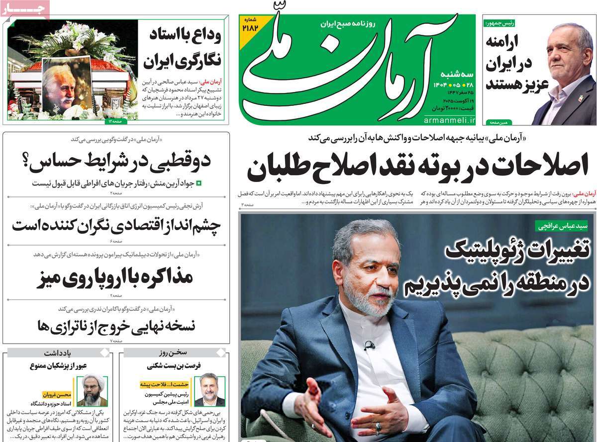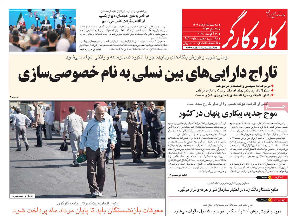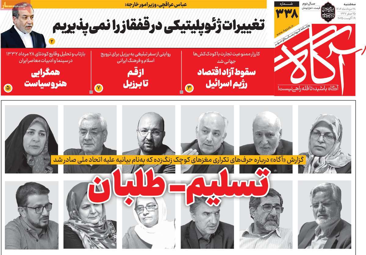 صفحه اول روزنامههای سهشنبه ۲۸ مرداد ۱۴۰۴