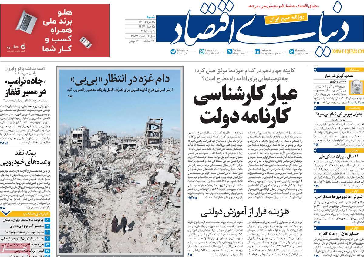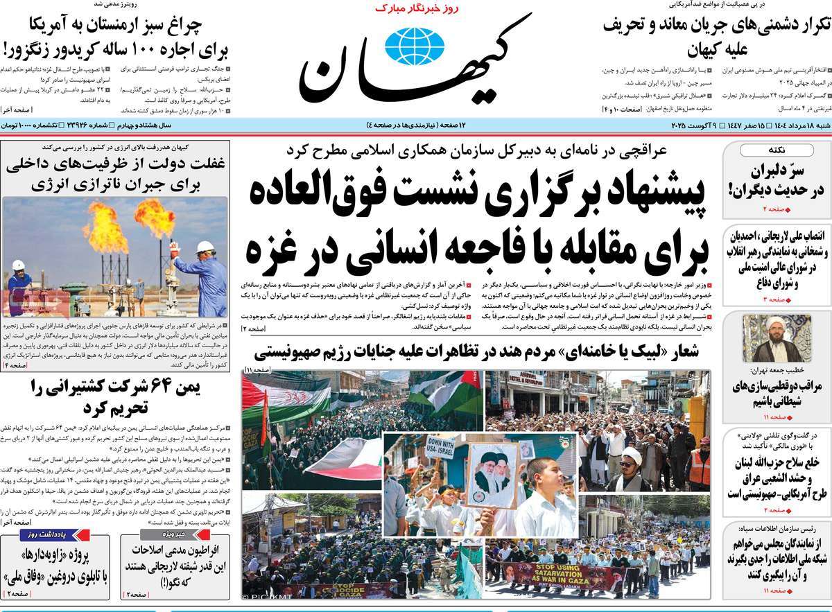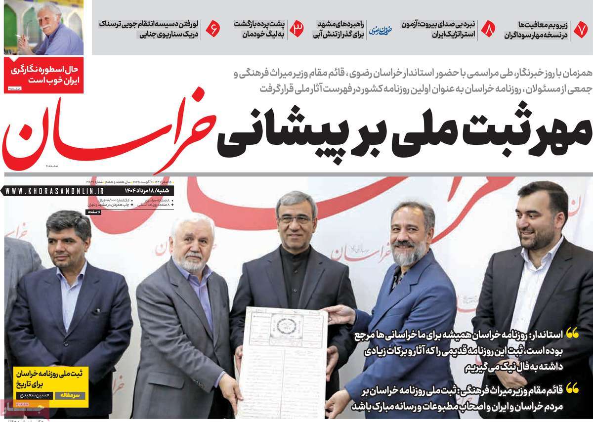 صفحه اول روزنامههای شنبه ۱۸ مرداد ۱۴۰۴