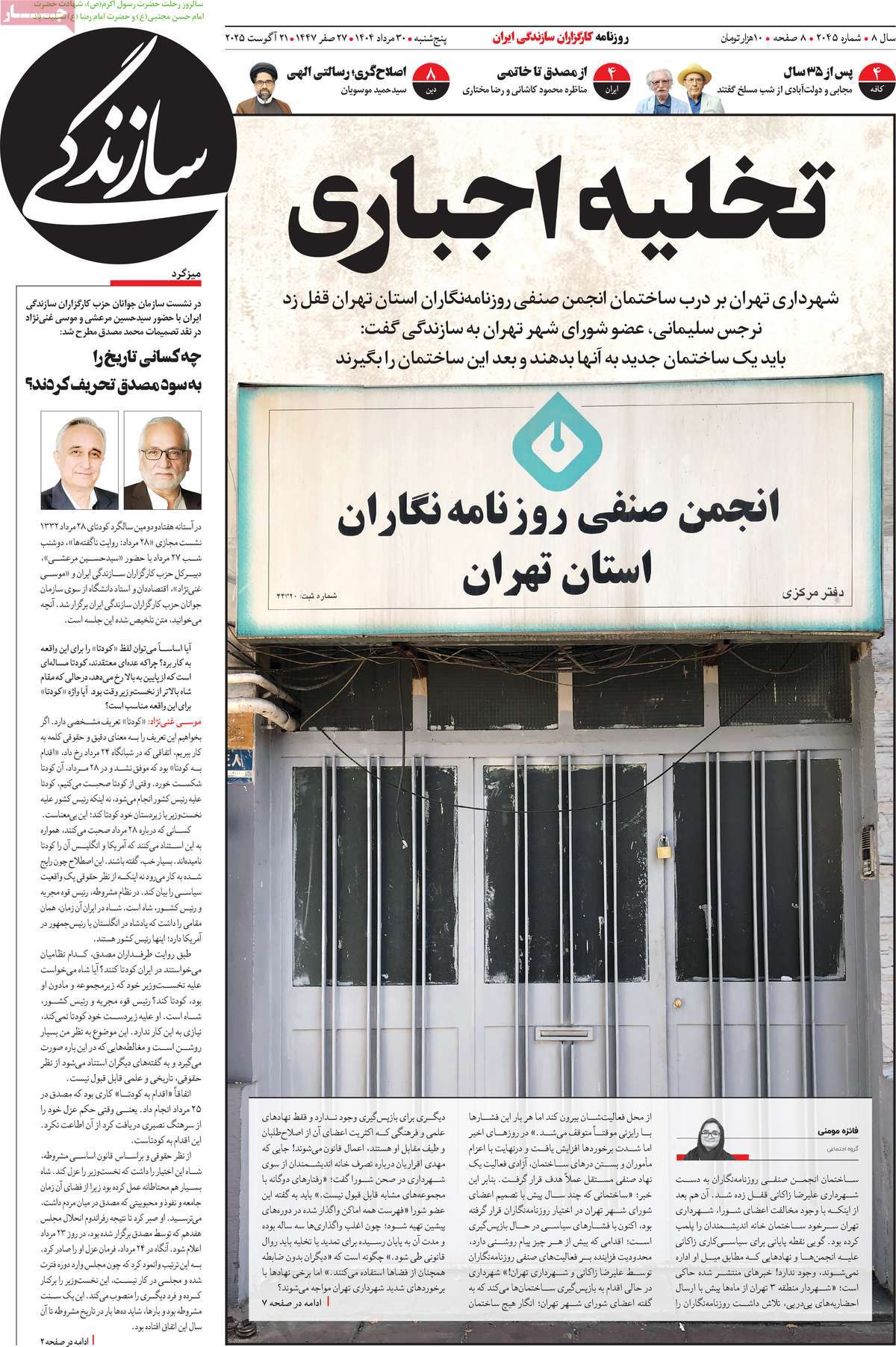 صفحه اول روزنامه‌های پنجشنبه ۳۰ مرداد ۱۴۰۴