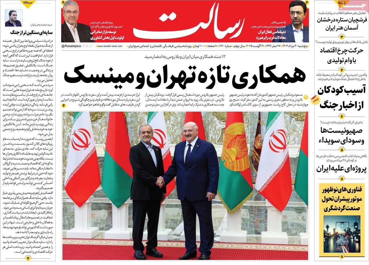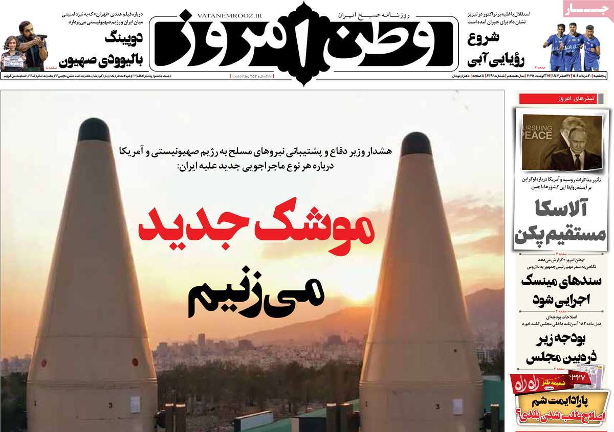 صفحه اول روزنامه‌های پنجشنبه ۳۰ مرداد ۱۴۰۴