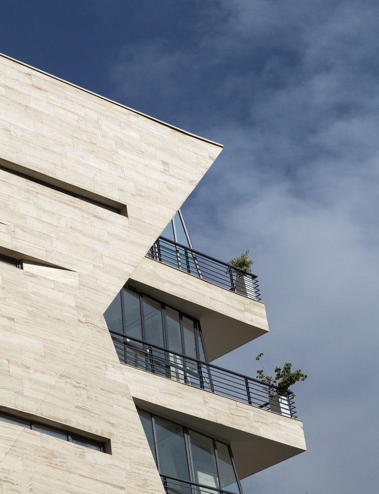 مصالح: سنگ تراورتن سفید، سنگ تراورتن سیلور، شیشه
