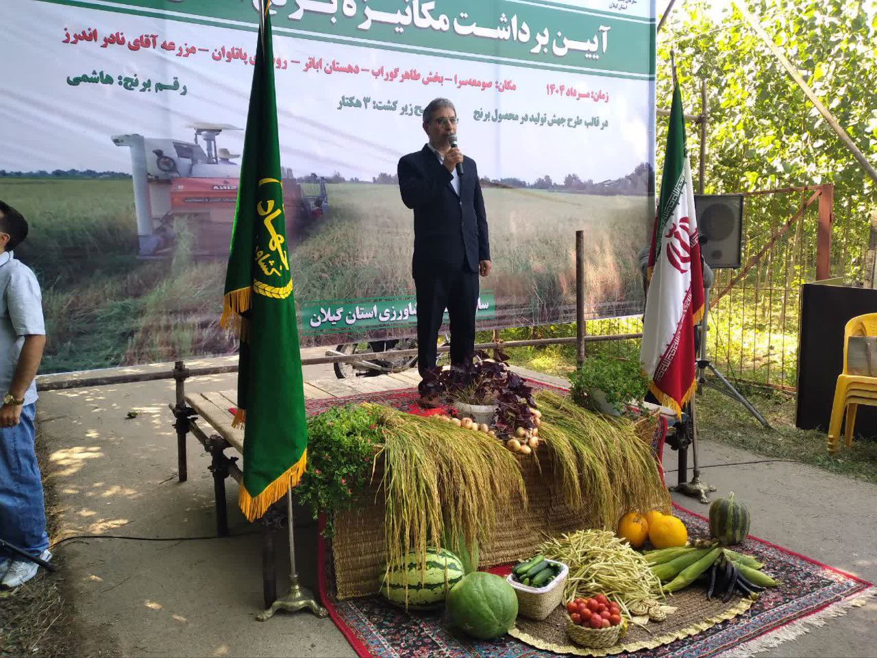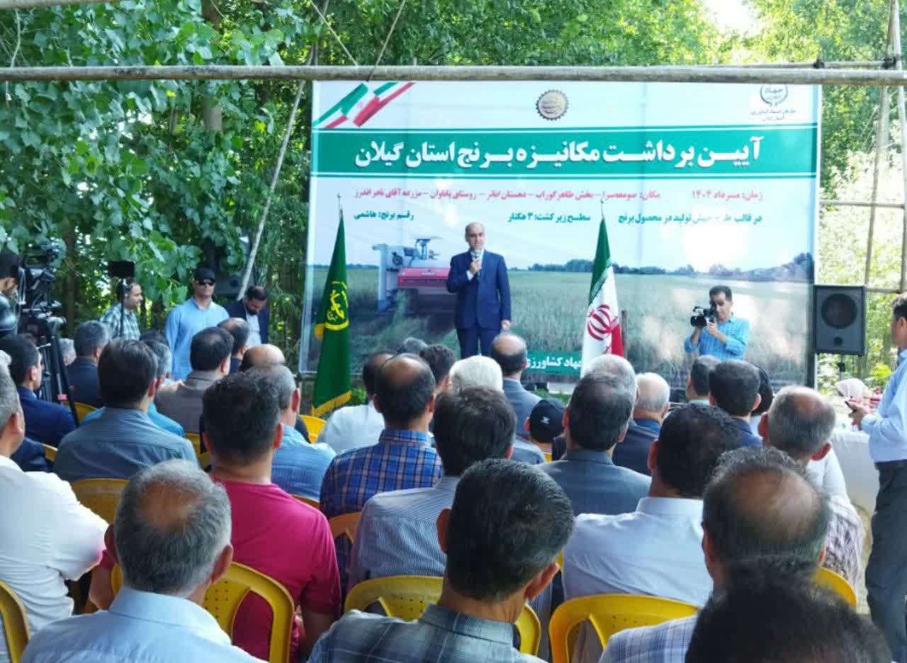 به گزارش پایگاه اطلاع رسانی دیارمیرزا، آیین برداشت مکانیزه برنج از شالیزارهای استان گیلان امروز (چهارشنبه) ۱ مرداد با حضور هادی حق شناس، استاندار گیلان، حمید رضایی، فرماندار صومعه سرا، سعید رحمت زاده نماینده مردم صومعه سرا در مجلس شورای اسلامی، رئیس سازمان جهادکشاورزی، فرمانده انتظامی و جمعی از مسوولین شهرستانی، استانی و کشاورزان در روستای پاتاوان دهستان اباتر بخش طاهرگوراب، صومعه سرا آغاز شد.