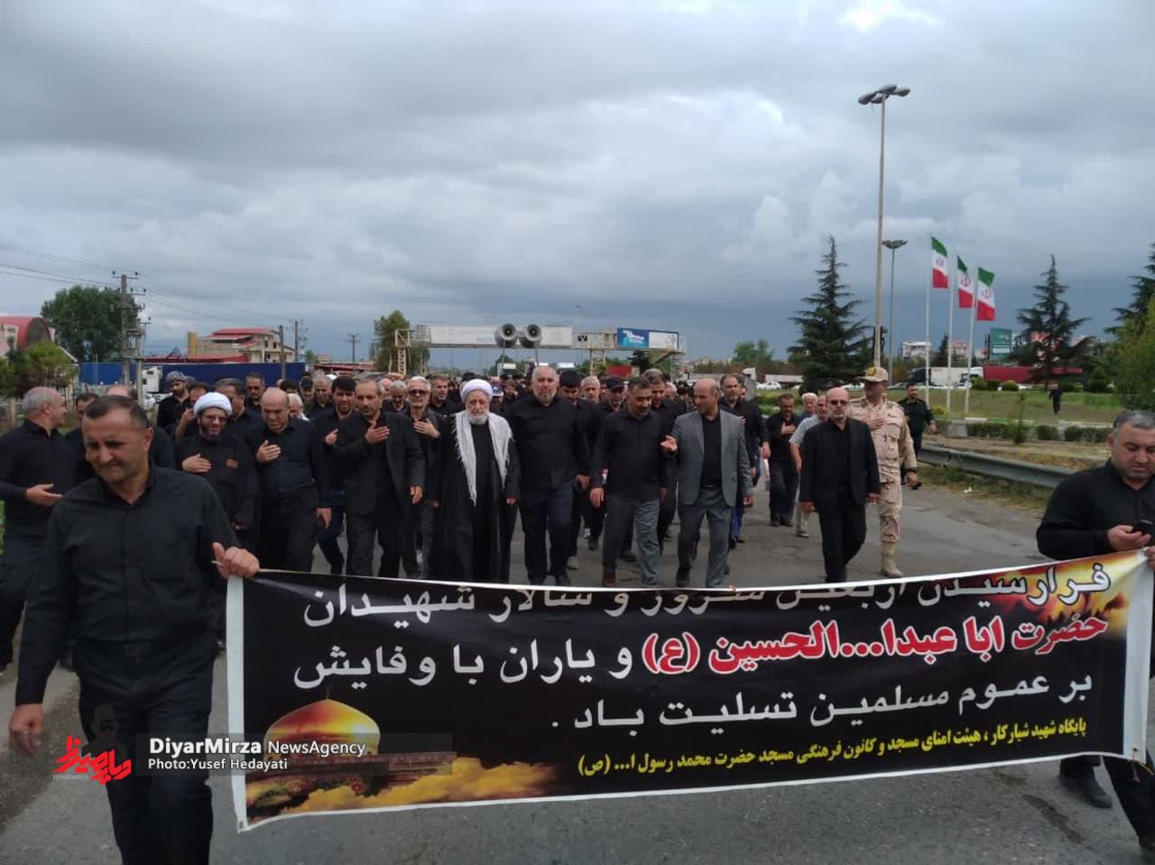 یوسف هدایتی: مراسم پیادهروی جاماندگان اربعین حسینی همزمان با اربعین سید و سالار شهیدان در آستارا برگزار شد و عزاداران مسیر مرکز شهر آستارا تا آستان امام زادگان ابراهیم و قاسم (ع) را عزاداری کردند.