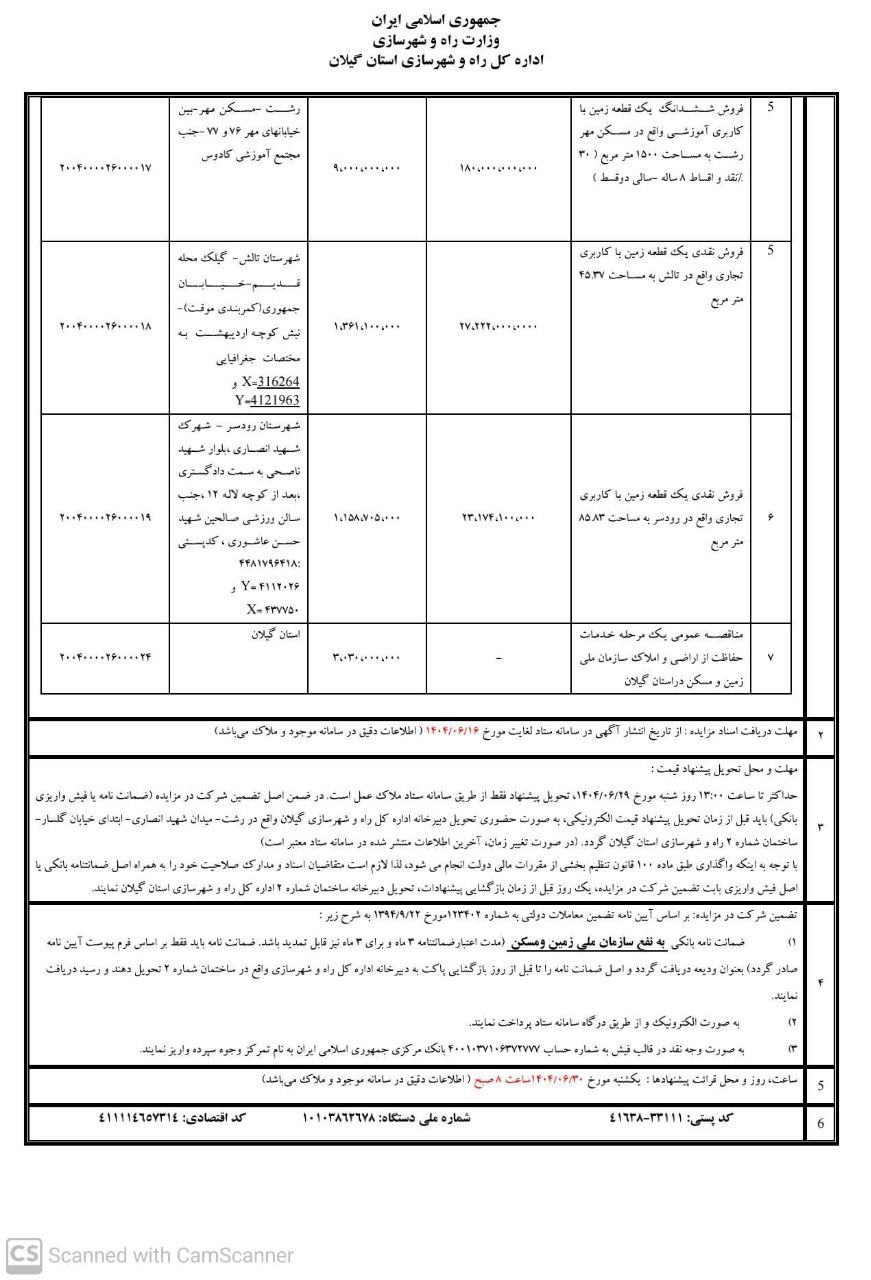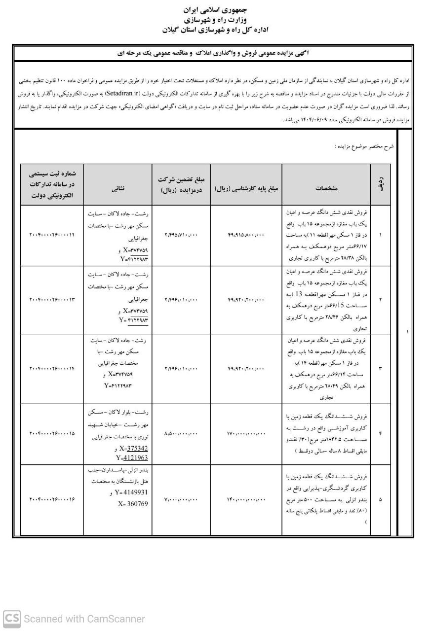 آگهی مزایده املاک و مستغلات راه و شهرسازی گیلان+ جزئیات