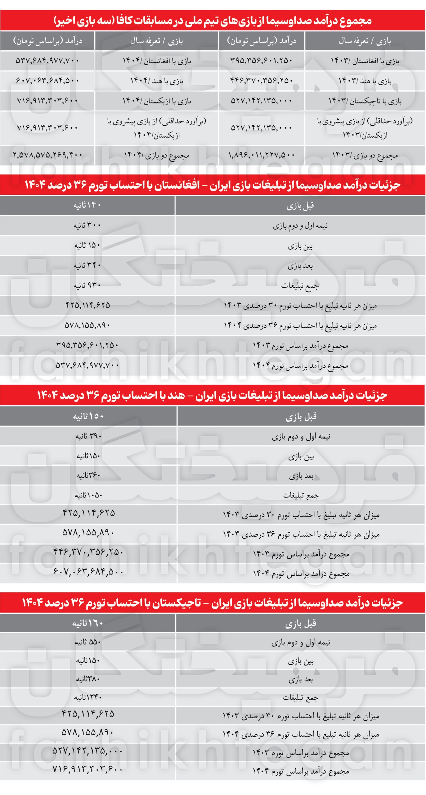 بازی ایران و افغانستان: ۵۳۷.۶ میلیارد تومان