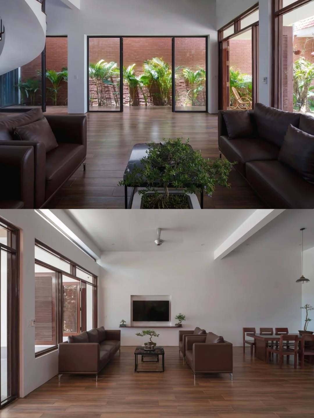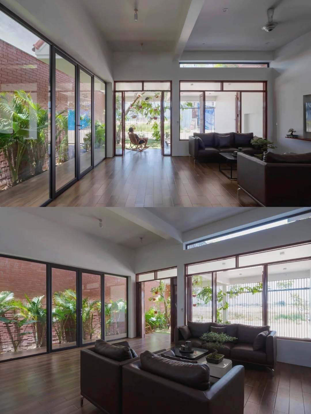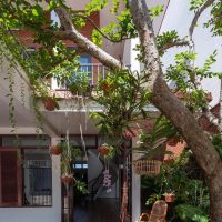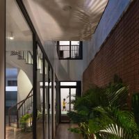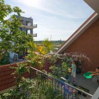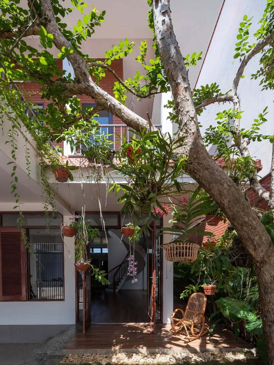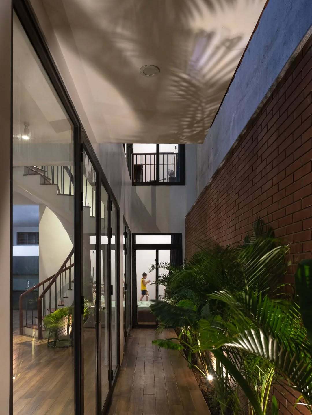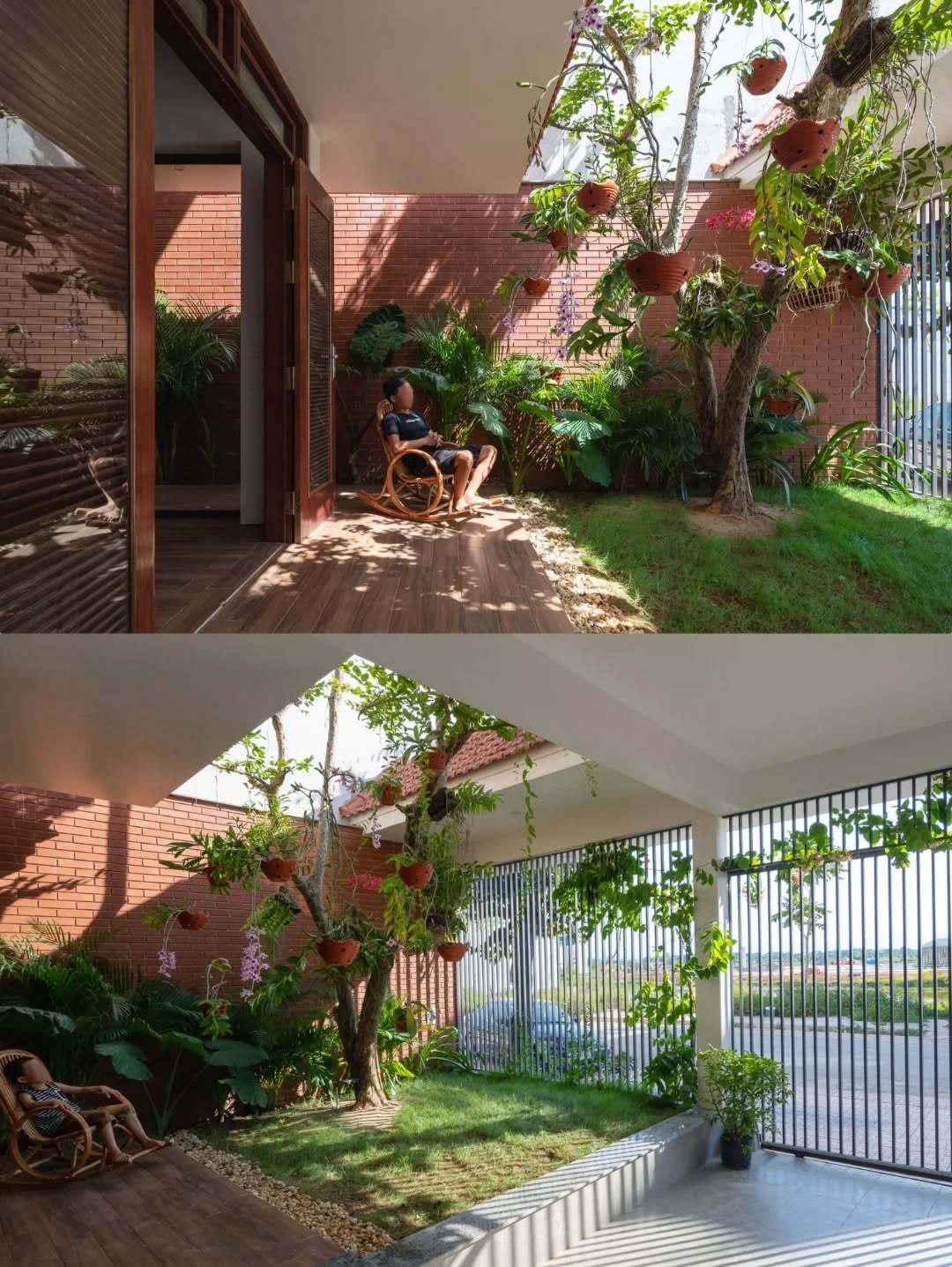 با وجود عرض کم زمین، معمار با ایجاد فضاهای باز و حیاط در جلوی خانه و در امتداد آن، مشکل کمبود نور و تهویه را حل کرده است. این حیاطها که به عنوان فضای بافر بین خانه و خیابان عمل میکنند، یادآور طراحی خانههای سنتی ویتنامی هستند و زندگی را در شهر آسانتر میسازند. علاوه بر این، در طبقه دوم نیز فضایی برای پرورش سبزیجات در نظر گرفته شده است تا کودکان بتوانند در کنار والدین خود از طبیعت لذت ببرند و مهارتهای باغبانی را بیاموزند. این فعالیتهای مشترک، به تقویت پیوند خانوادگی نیز کمک میکند.