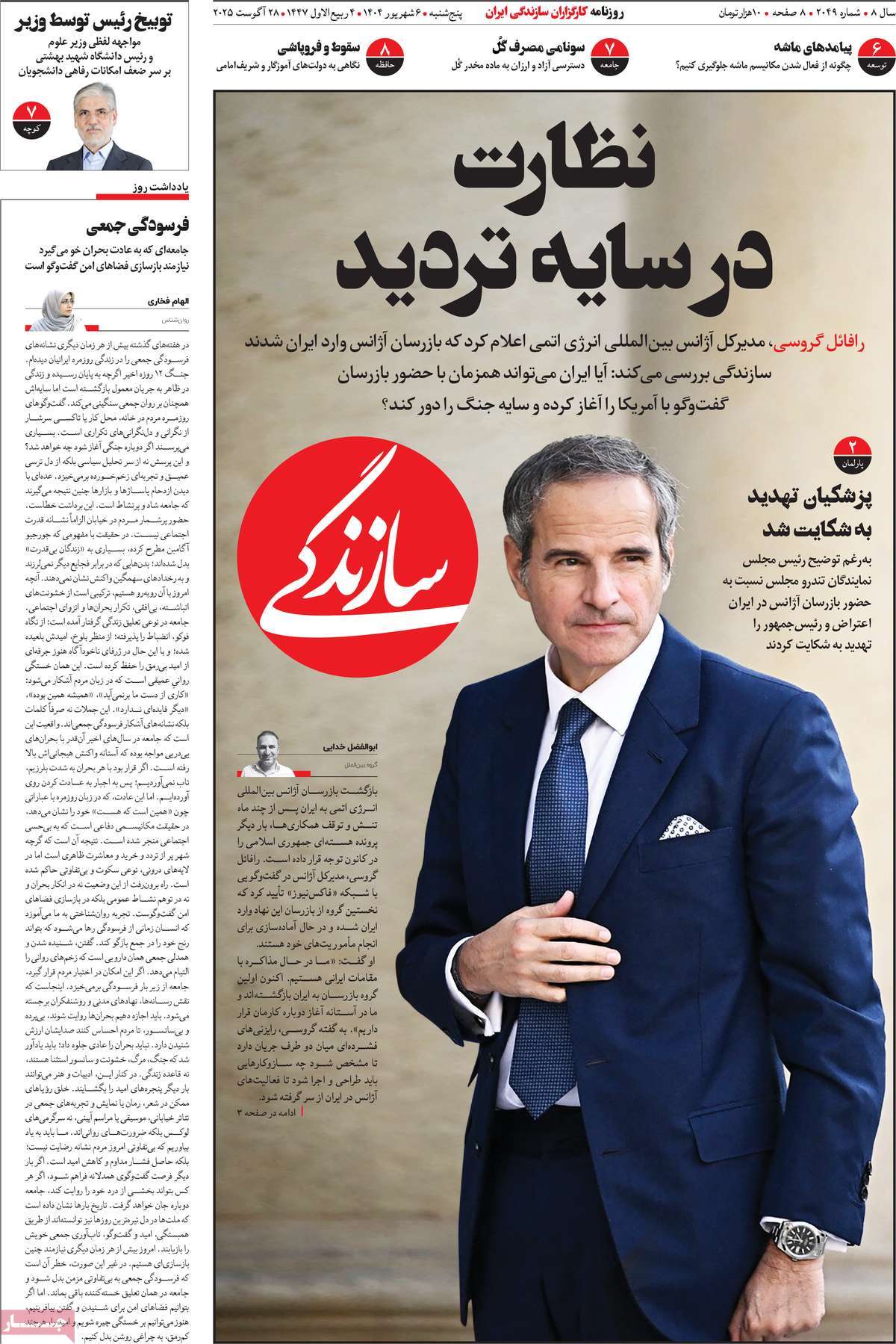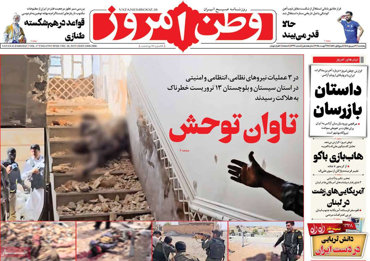صفحه اول روزنامههای پنجشنبه ۶ شهریور ۱۴۰۴