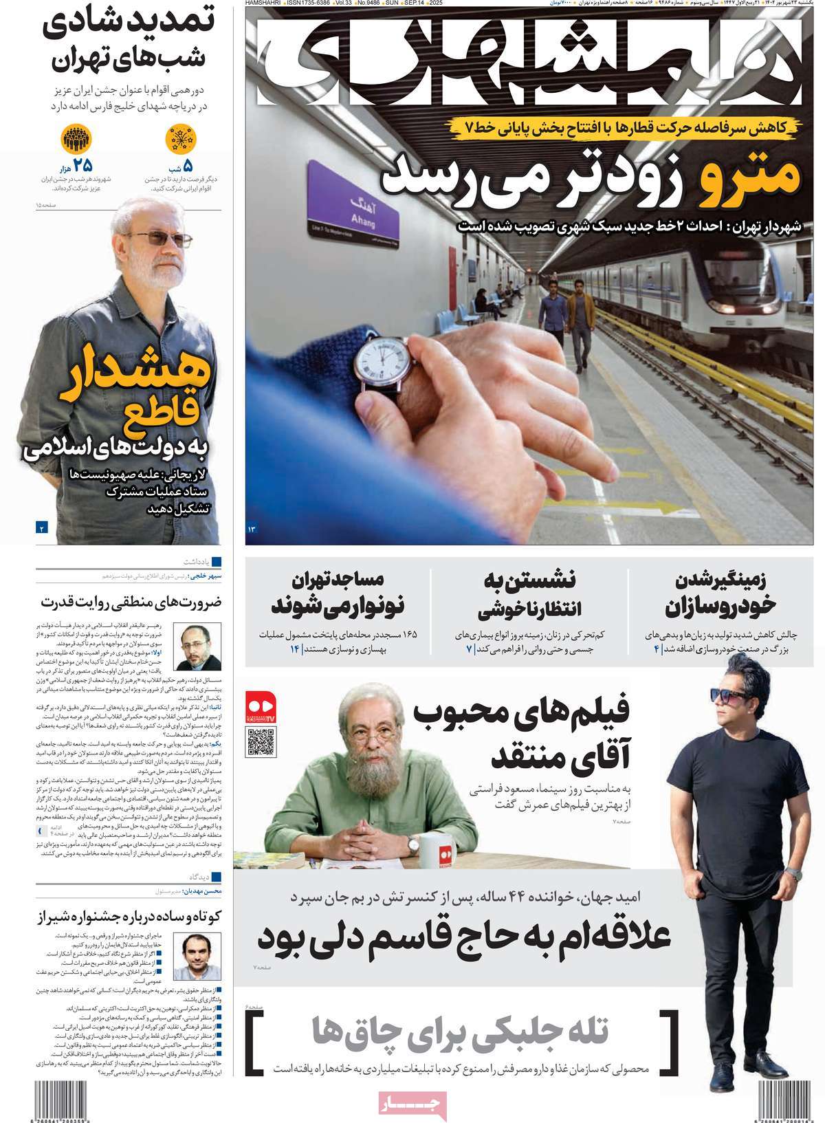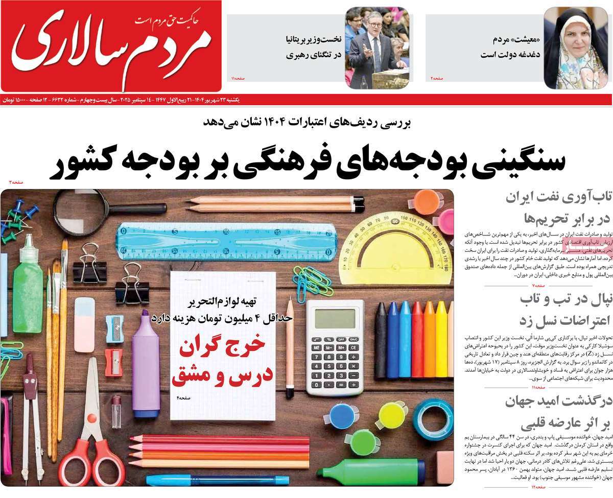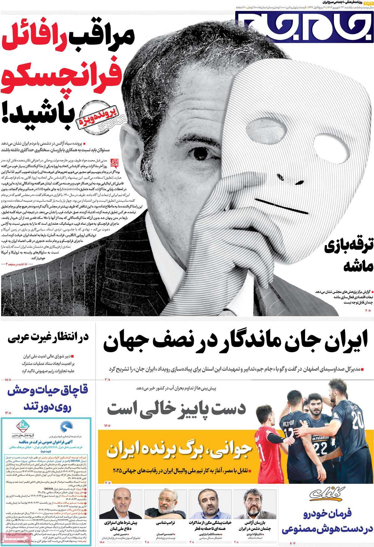 صفحه اول روزنامههای یکشنبه ۲۳ شهریور ۱۴۰۴