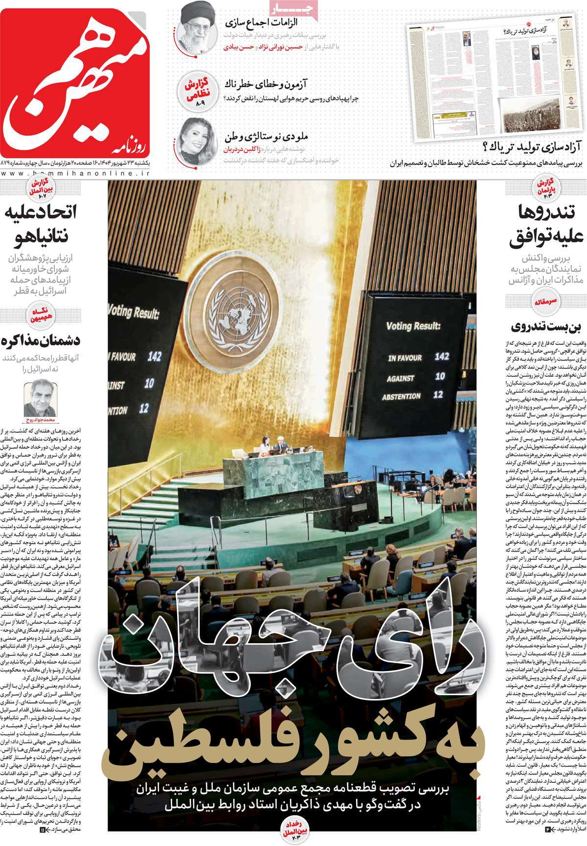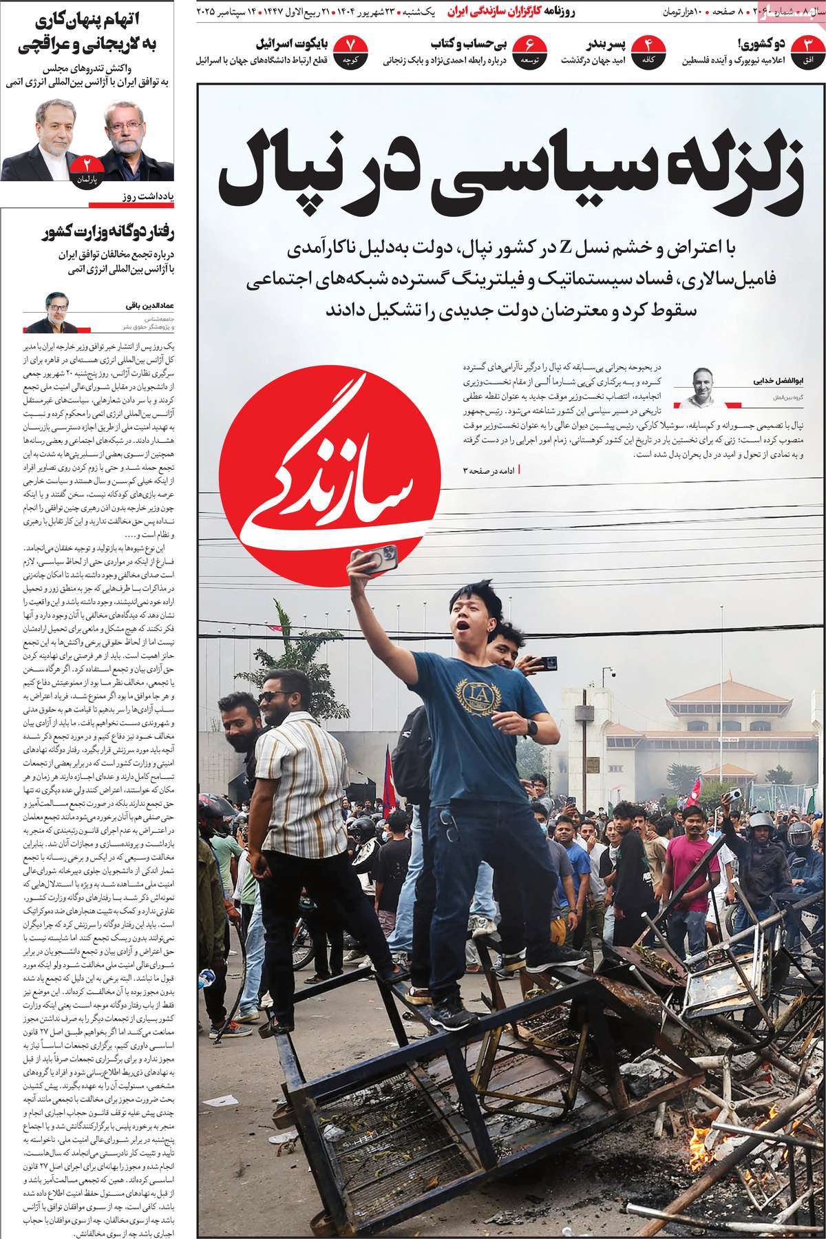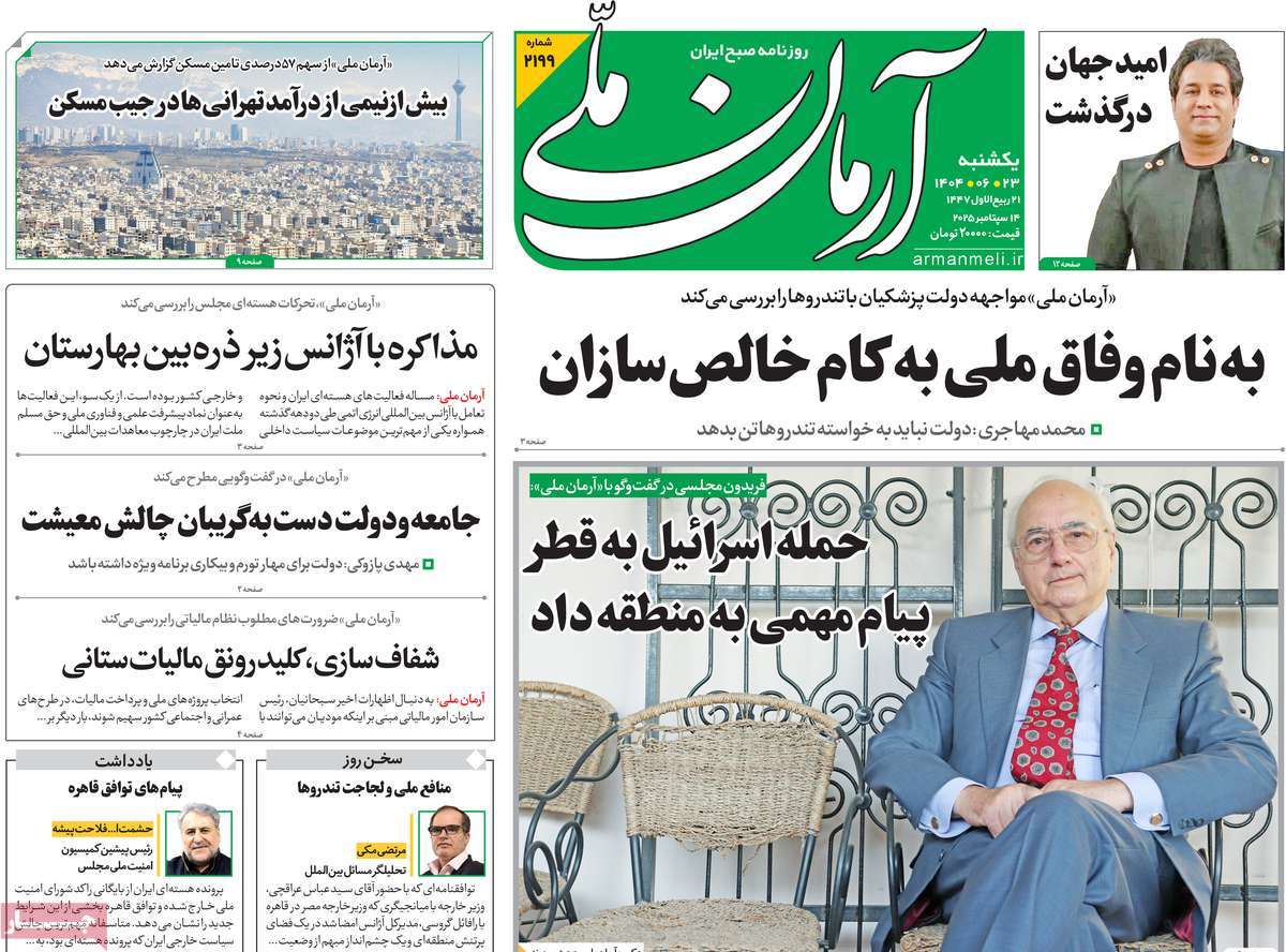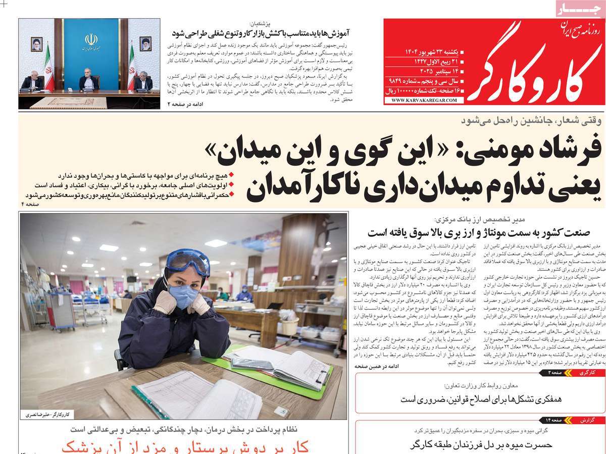 صفحه اول روزنامههای یکشنبه ۲۳ شهریور ۱۴۰۴