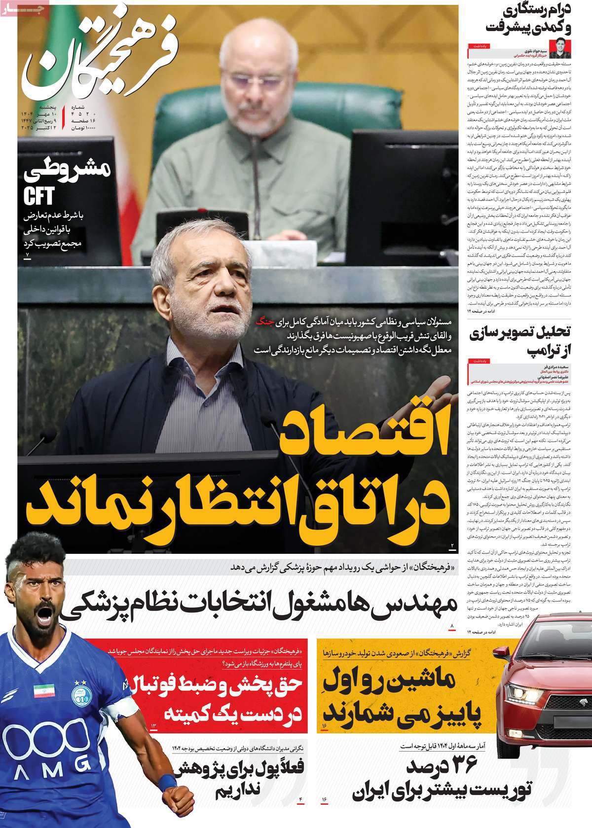 صفحه اول روزنامههای پنجشنبه ۱۰ مهر ۱۴۰۴