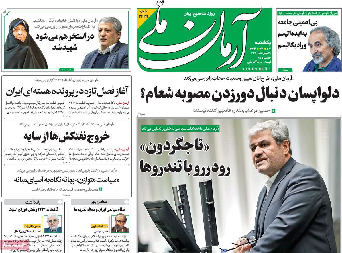 صفحه اول روزنامههای یکشنبه ۲۷ مهر ۱۴۰۴