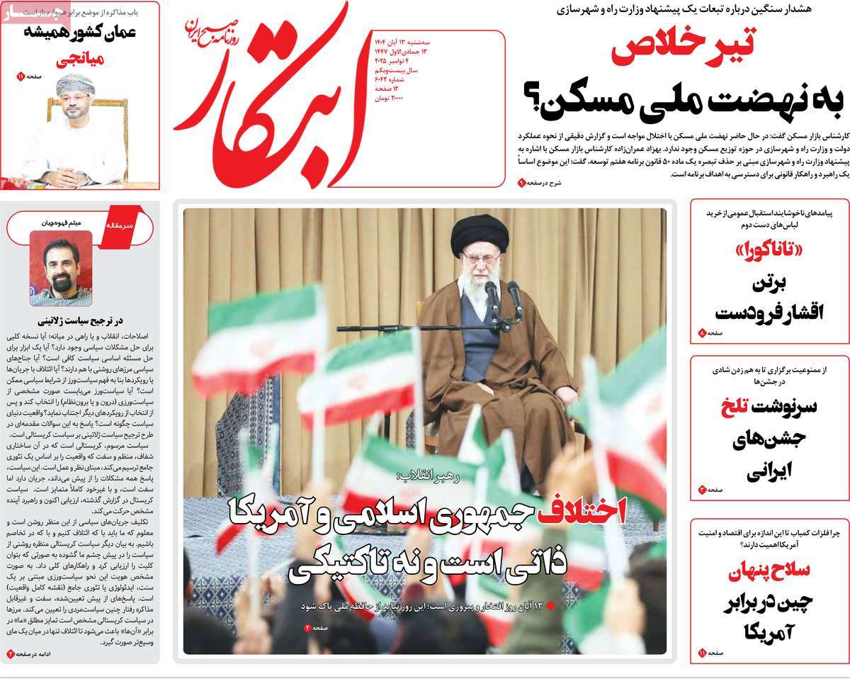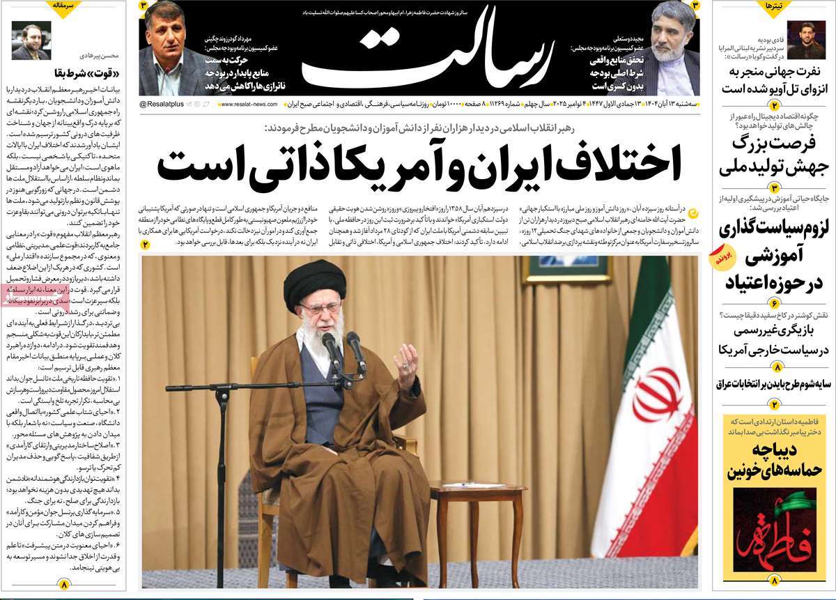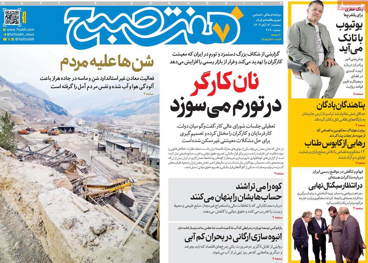 صفحه اول روزنامههای سهشنبه ۱۳ آبان ۱۴۰۴