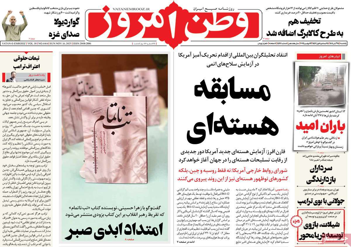 صفحه اول روزنامههای یکشنبه ۲۵ آبان ۱۴۰۴