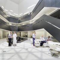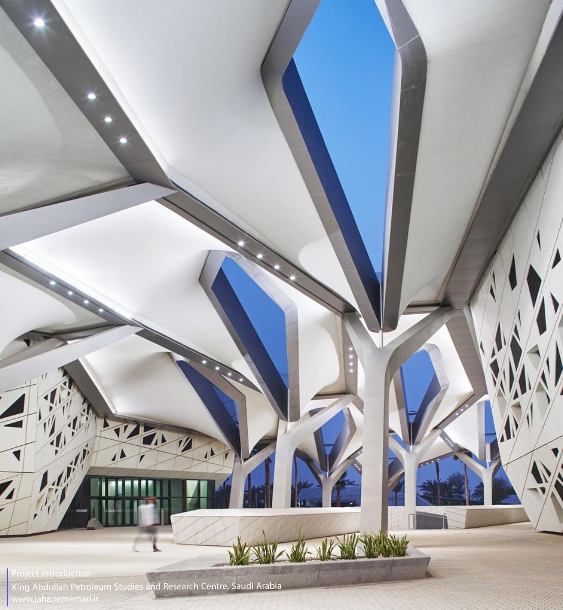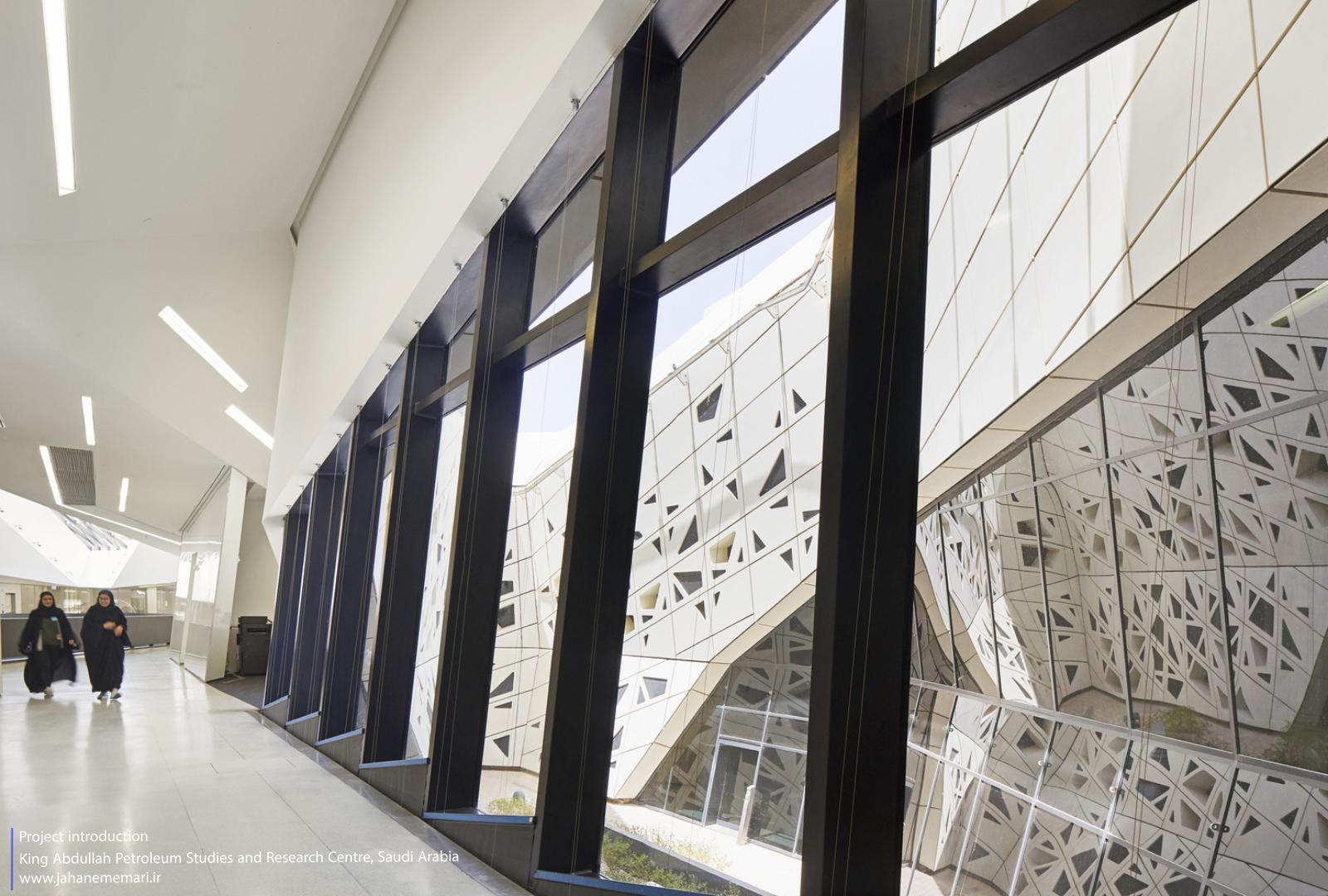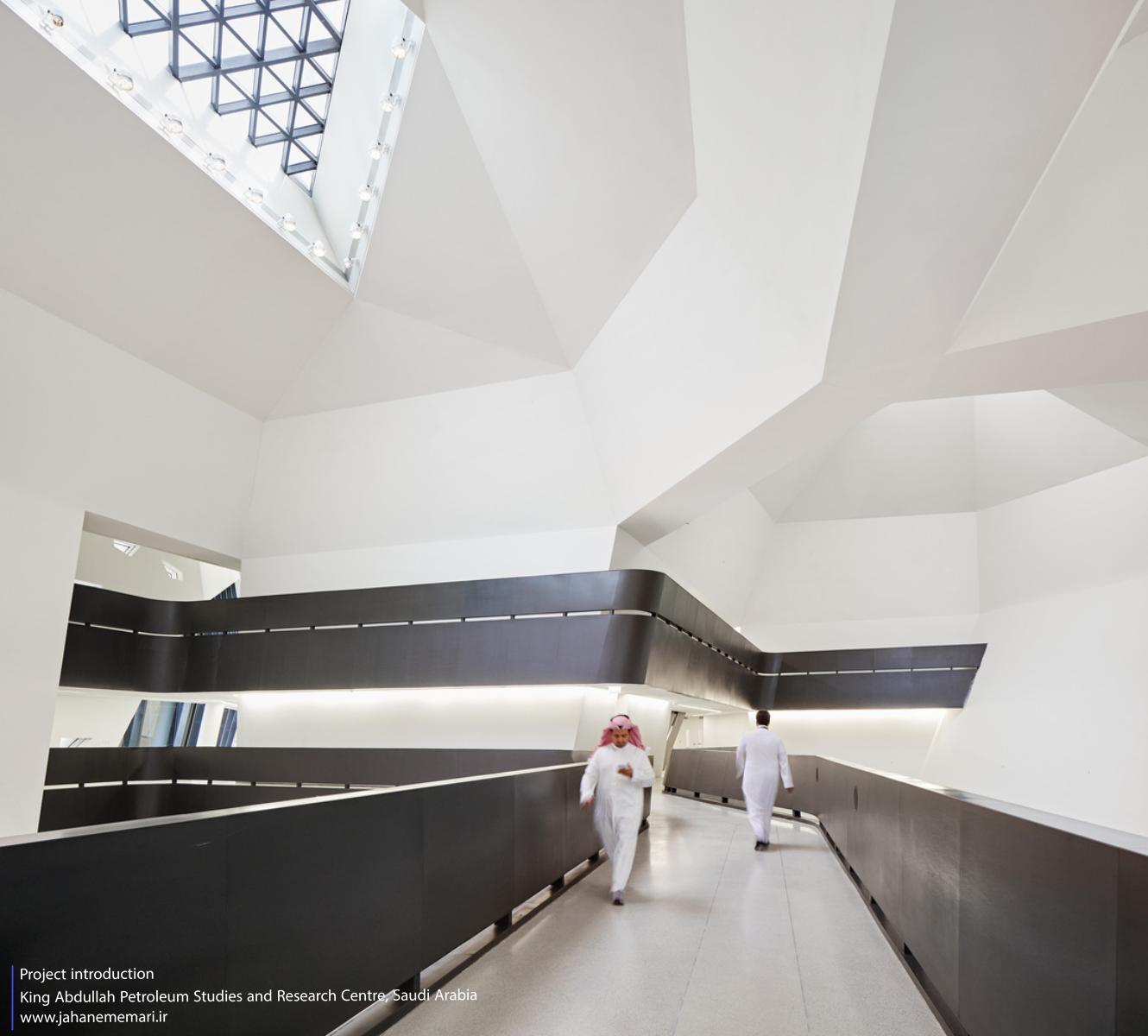 معماری مرکز تحقیقات و مطالعات نفتی ملک عبدالله شفافیت و تبادل فعال میان پژوهشگران و بازدیدکنندگان را ترویج میکند.