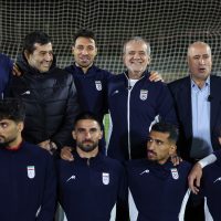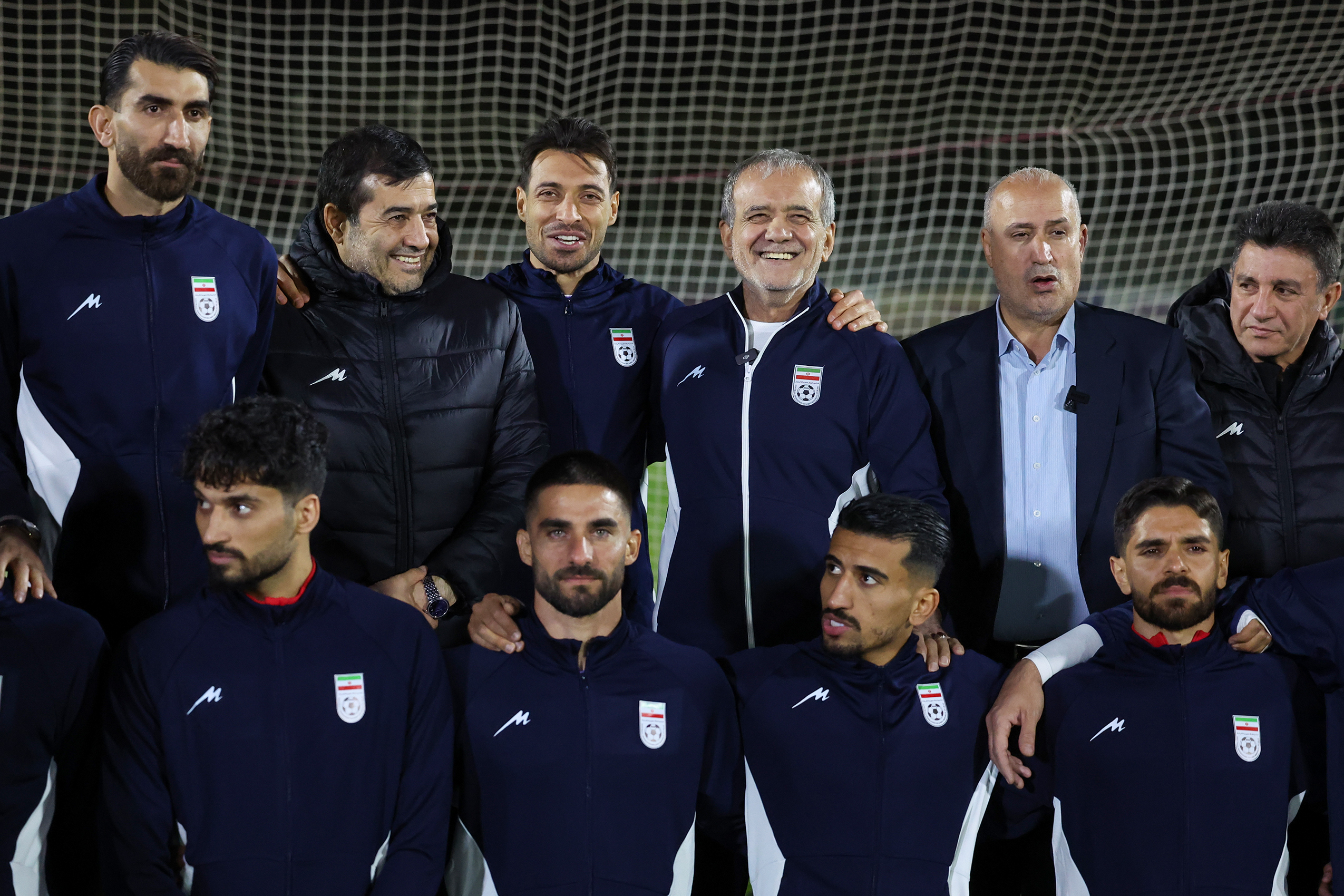 پزشکیان همچنین برای دقایقی با تعدادی از بازیکنان تیم ملی پا به توپ شده و فوتبال بازی کردند.