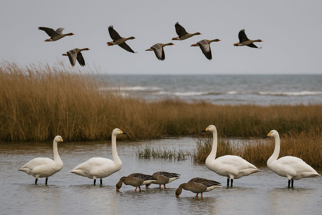 ورود نخستین گروه قوها و غازهای مهاجر به پارک ملی بوجاق